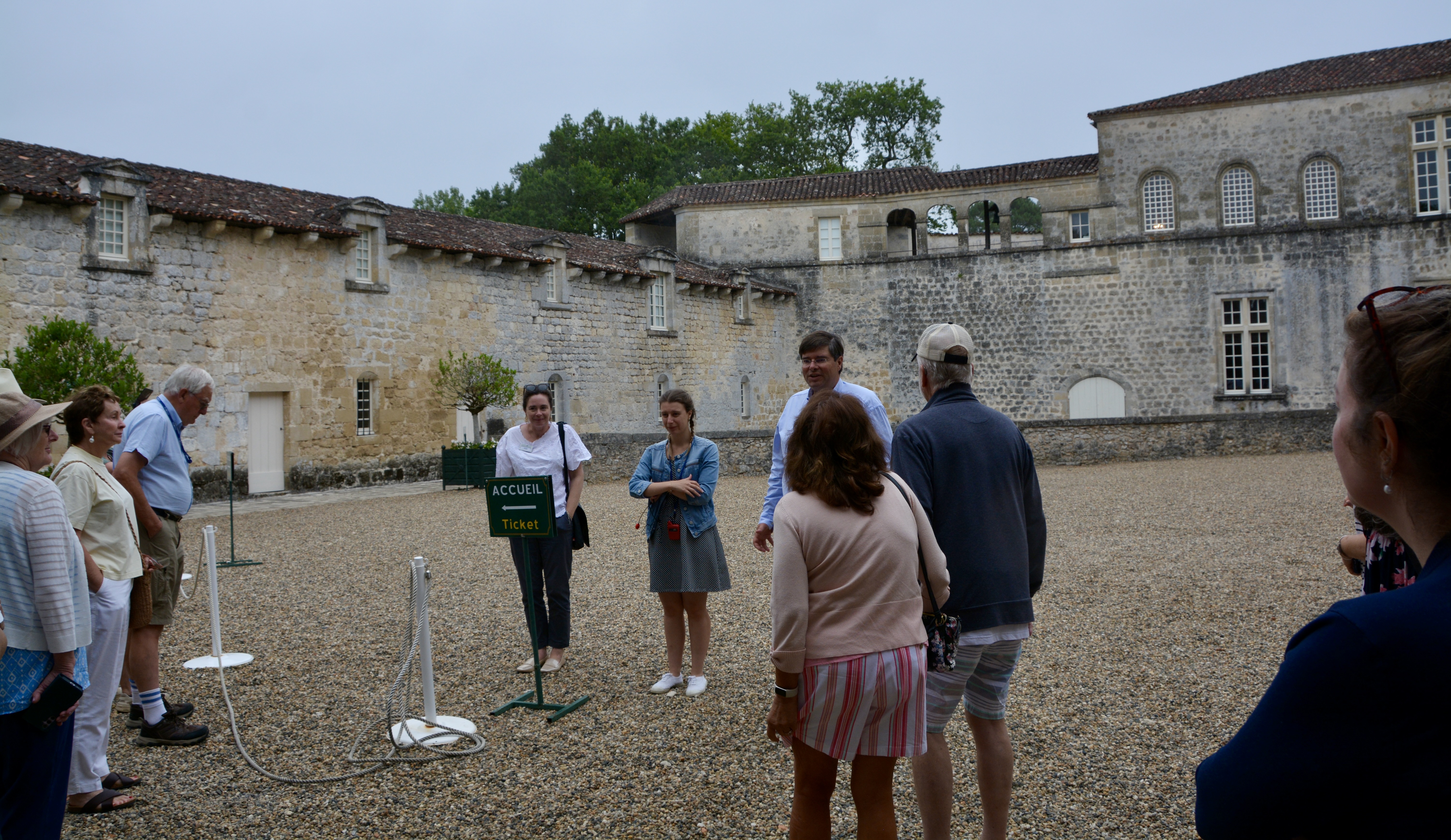 We met in the courtyard of the 14th-century chateaux, were shown the vineyards, toured the production facilities, and had a tasting at Grand Mayne. We visited one day post-blending and the cleanup from that process was still taking place. I didn’t care at all for the first two offerings we tasted, but I really liked the third and got a bottle. “The vineyard of Chateau Grand Mayne is located to the west of Saint Emilion, at the foot of the plateau. Even though the vineyard is in one large block of vines, Chateau Grand Mayne is the result of two different terroirs.” thewinecellarinsider.com. I read after our visit that “Chateau Grand Mayne is better with at least 5-8 years of bottle age. Of course, that can vary slightly, depending on the vintage. Chateau Grand Mayne is best enjoyed in the first 6-25 years of life.” the winecellarinsider.com. The one I selected was a 2015; the two I didn’t care for were more recent vintages.