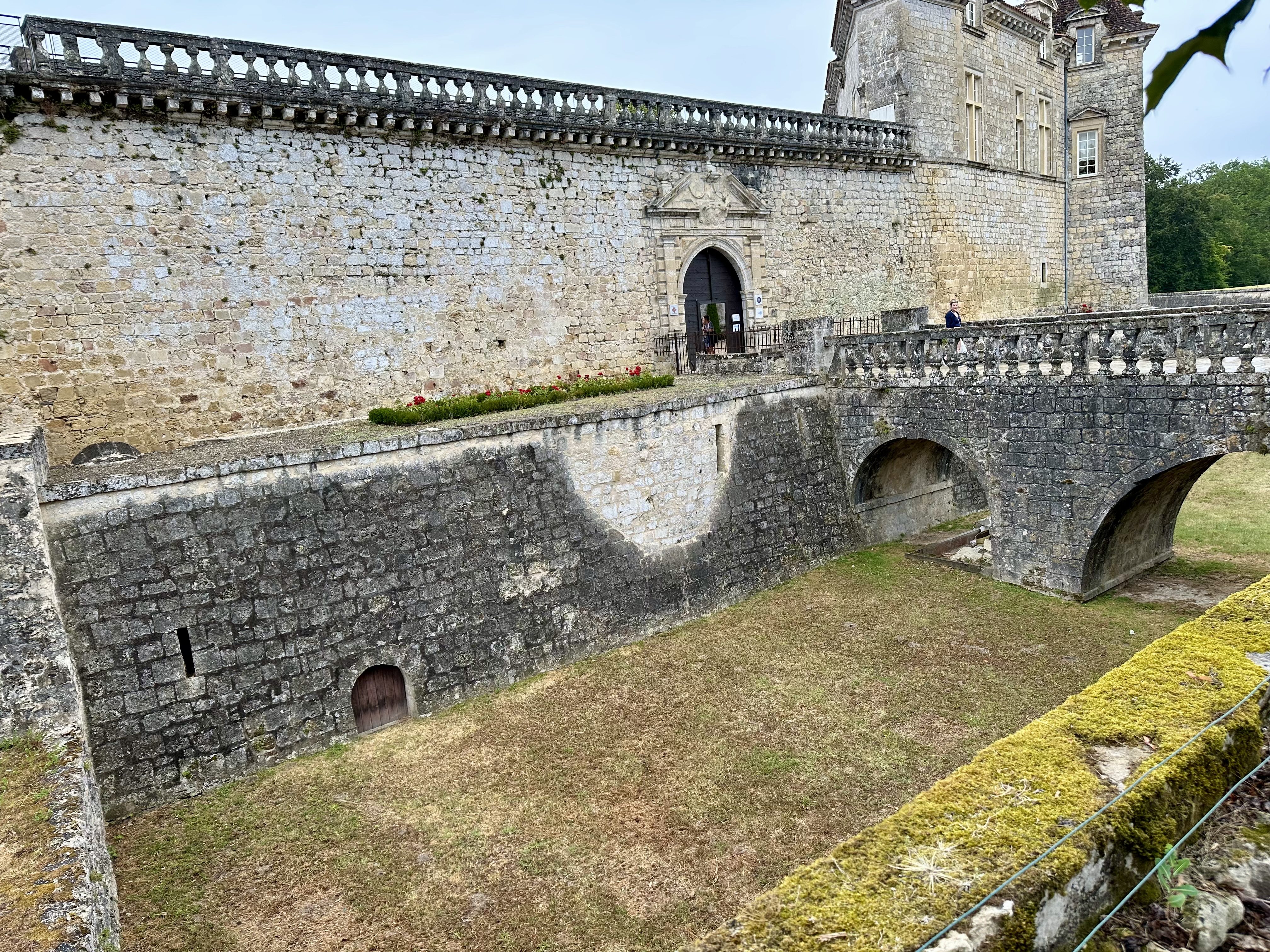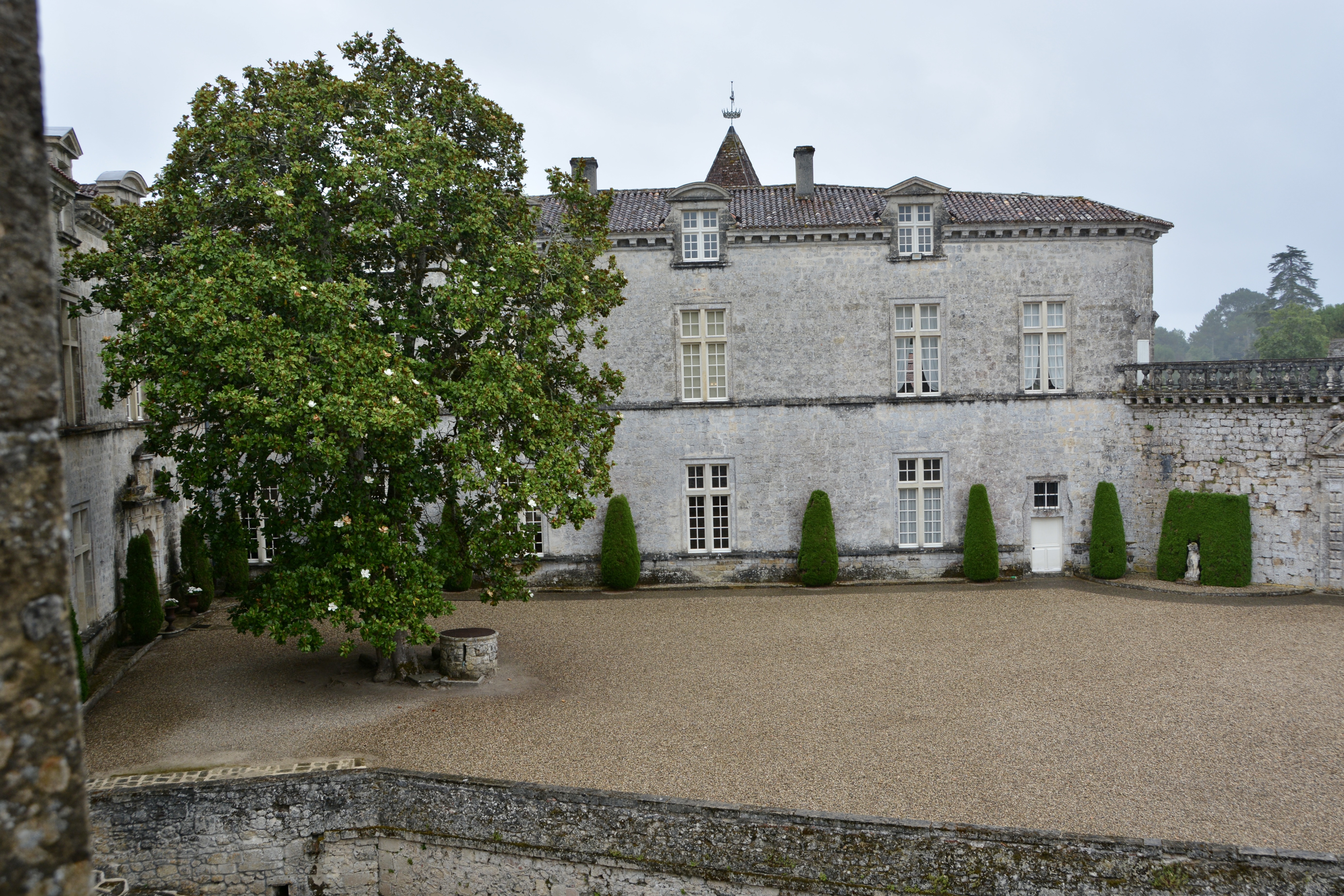 After passing through the largest private interior chapel I have ever toured-I guess if there is a Pope in the family you get a bigger chapel-we got a view of the main courtyard, a smaller inner courtyard, and the beautiful lush green grounds surrounding the chateau from a terrace and exterior upper walkway. We finished our tour on the ground floor. After leaving the kitchen, we were greeted by the Comte again who handed us each a glass of Sauternes, the local speciality. These are completely different and sweeter wines than we sampled yesterday. A local vintner was commissioned to create the estate’s wine.