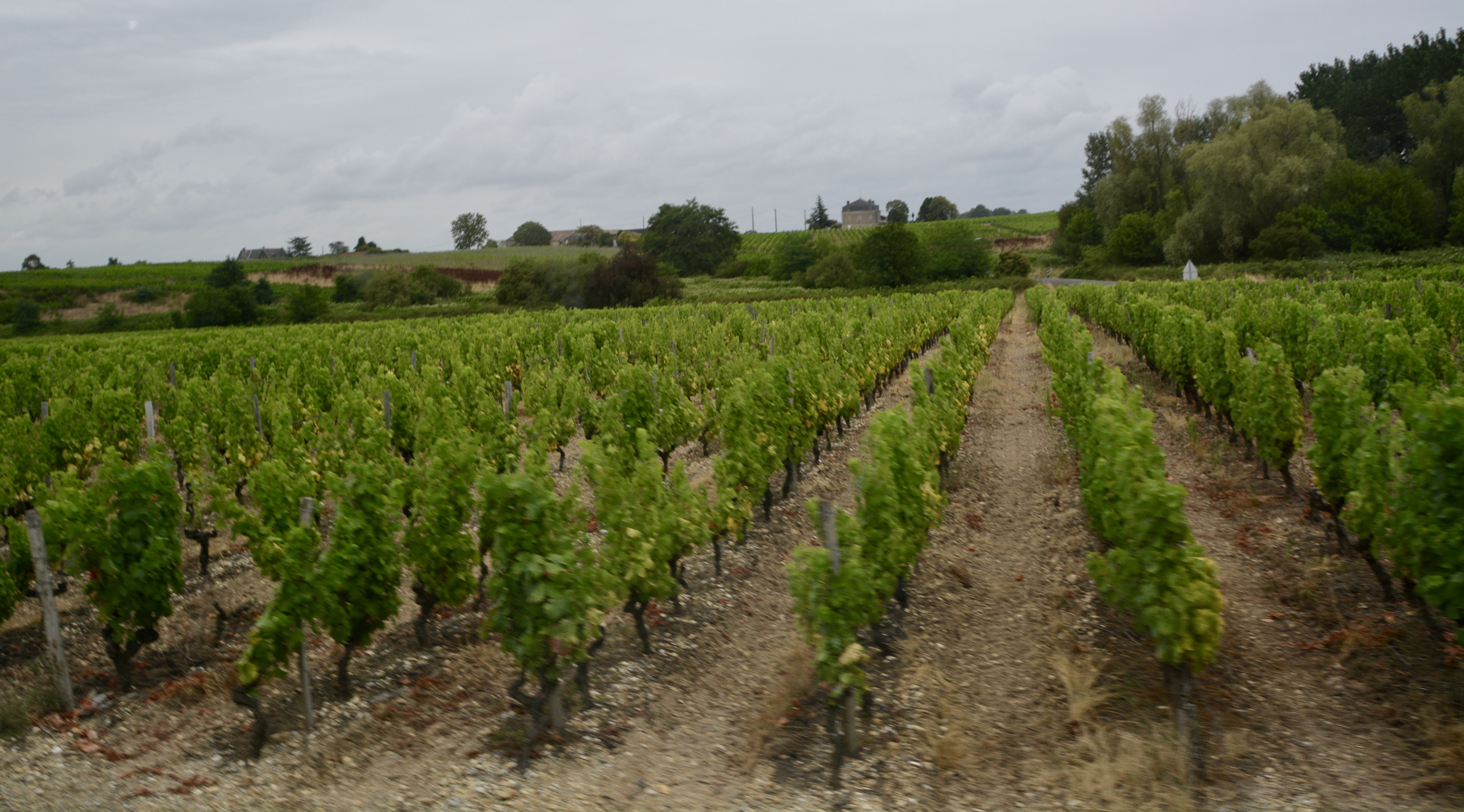 We also had the opportunity to wander around the estate’s vineyards just across the road from the chateau. It will be another month before the grapes take on their rich black color. Leaving the chateau behind, we saw many other beautiful estates before arriving at our destination. We dropped one group off at Chateau Pichon Baron for an upgraded excursion.
