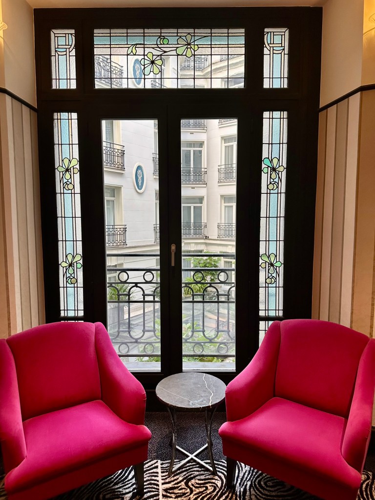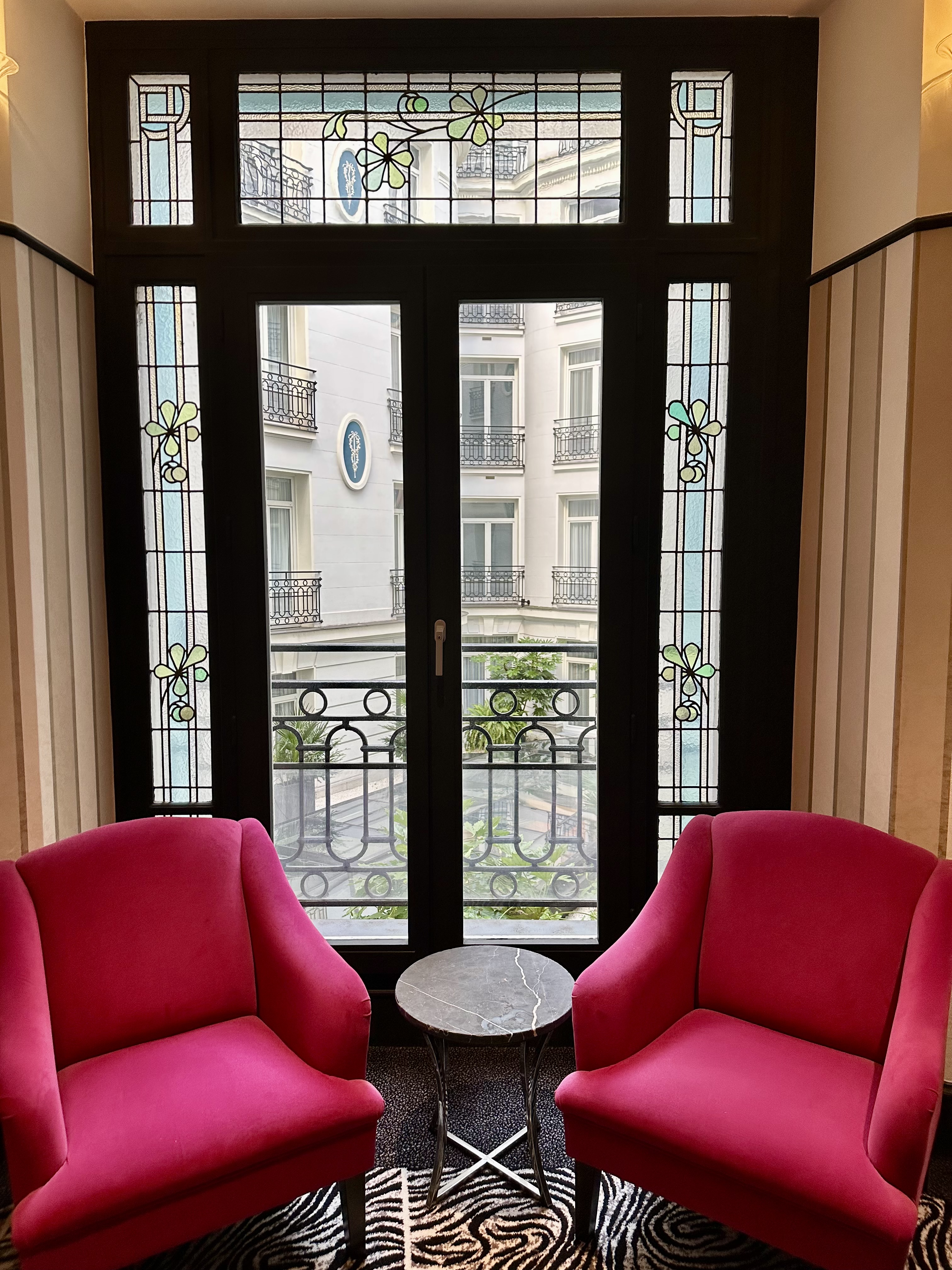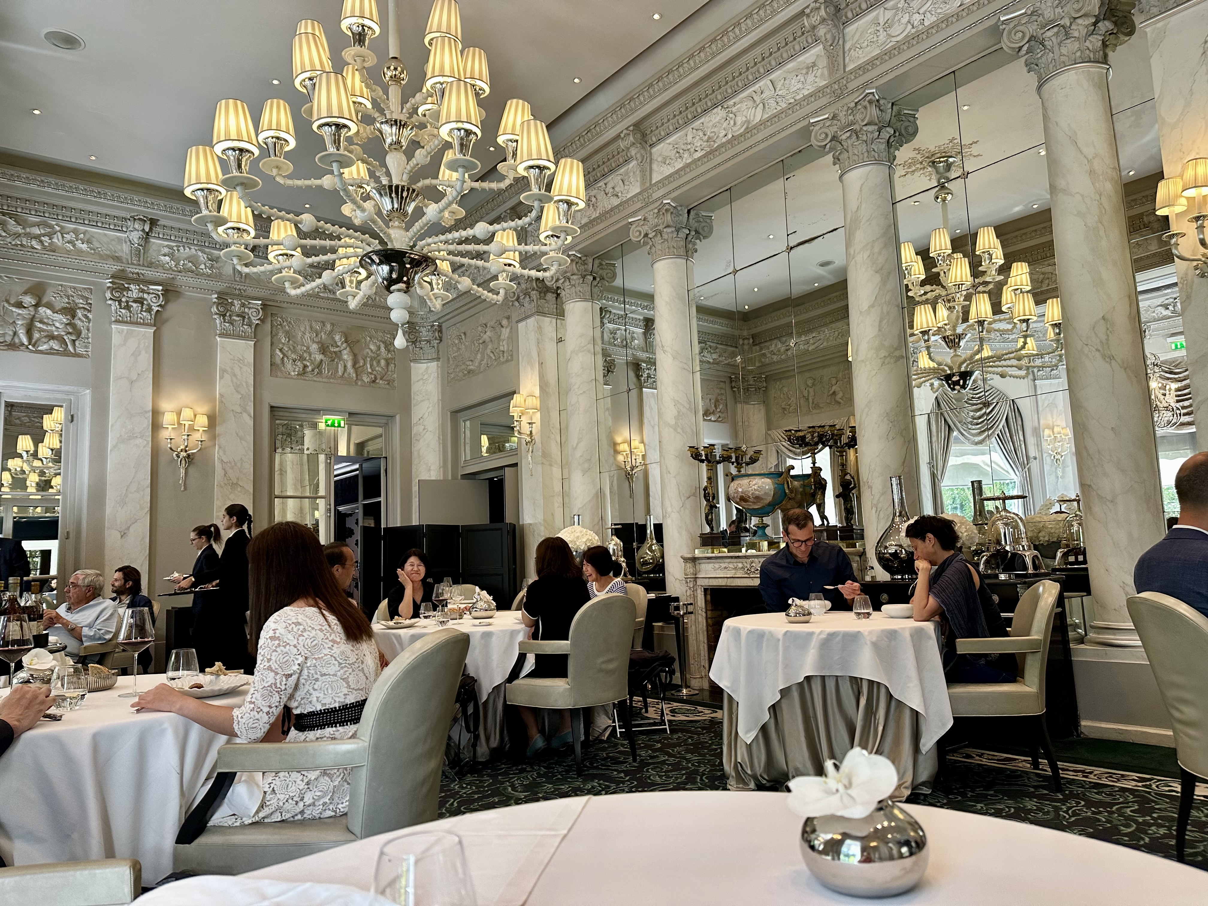 We arrived in Paris just after my birthday, so this is a special treat. Yes, it’s expensive but doable (at lunch) and oh so worth it. We got to the restaurant just before opening so we waited in the lounge with views out onto the grounds.