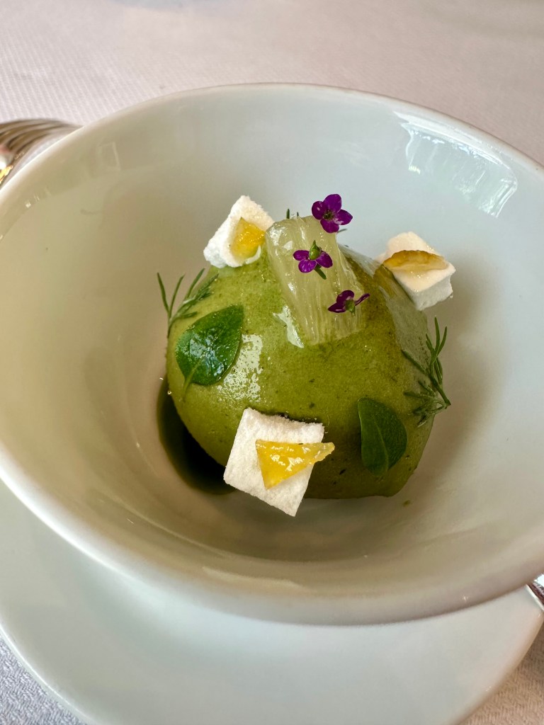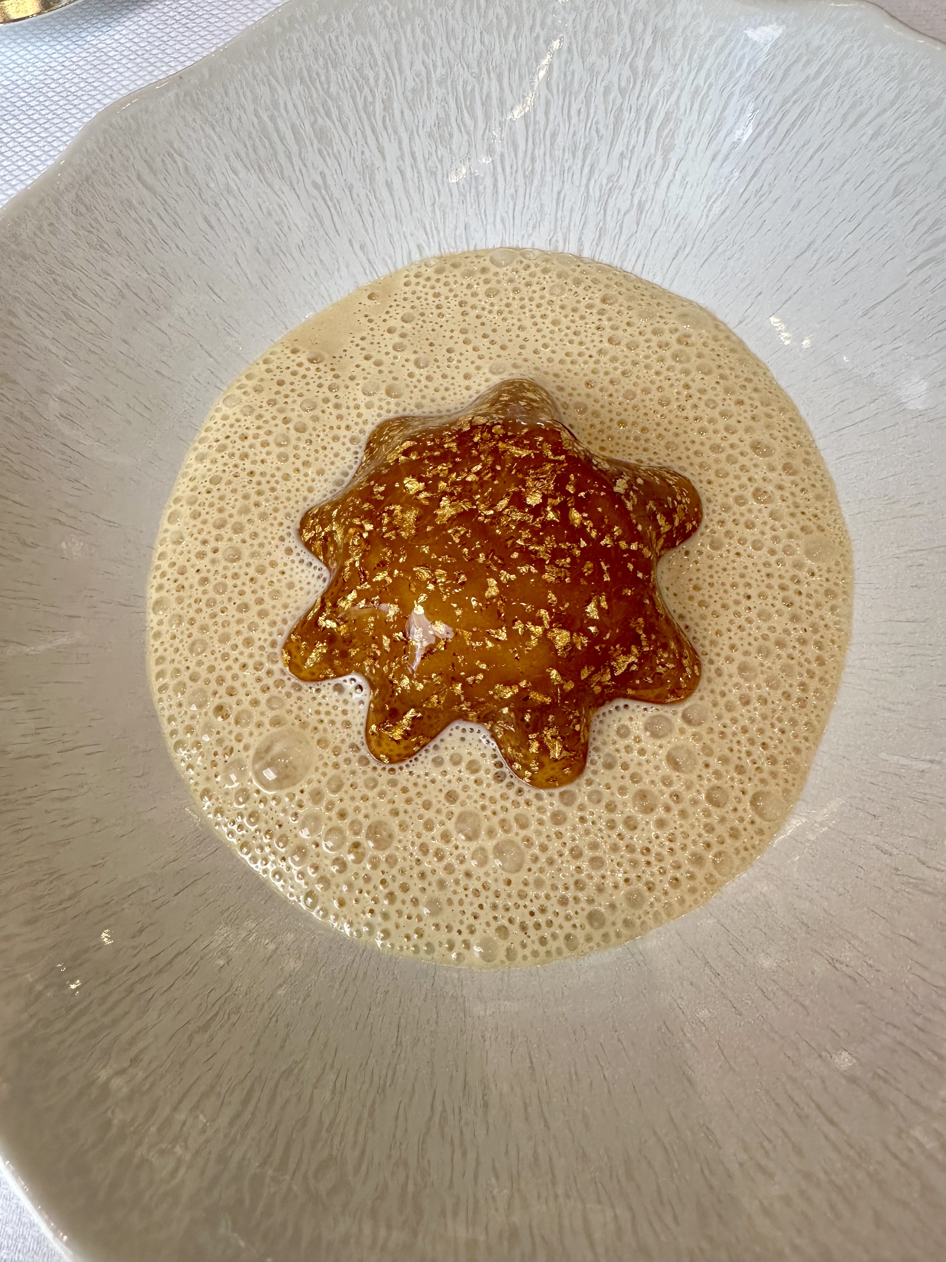 When seated, we had a lovely table that took in the entirety of the main dining room. It’s spectacular. The menu is seafood heavy, and they easily accommodated one change for us, subbing in another item off the twelve-course menu.