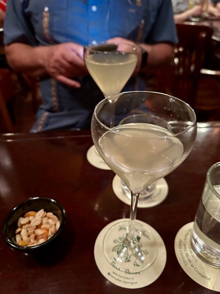 After lunch we went back and changed and then had the afternoon to wander around Paris. That night we found ourselves at Harry’s New York Bar, not far from the opera house. Neither of us wanted dinner, but that did not stop us from enjoying French 75s (champagne and gin) at the bar where they were invented. “The Bar was born on November 26, 1911 on Thanksgiving Day, (a sign for an American bar). It is a bar literally dismantled from the 7th avenue of Manhattan and reassembled rue Daunou in Paris.” harrysbar.com