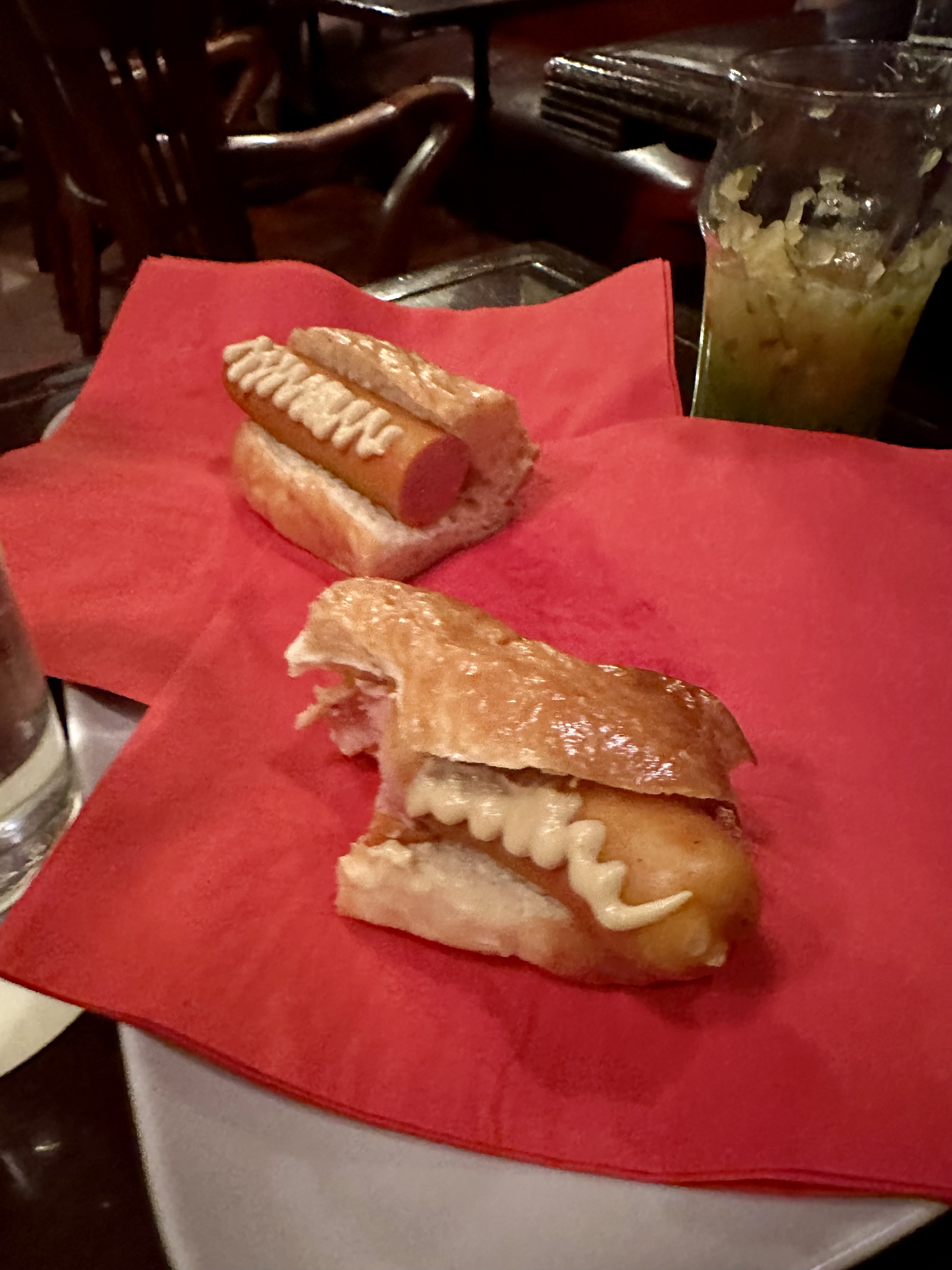 When Boris suggested yet another drink, I told him I probably needed something to eat so we shared the most expensive hot dog on the planet. That got the attention of several other patrons that asked us about them, and Harry’s sold lots of hot dogs that night.