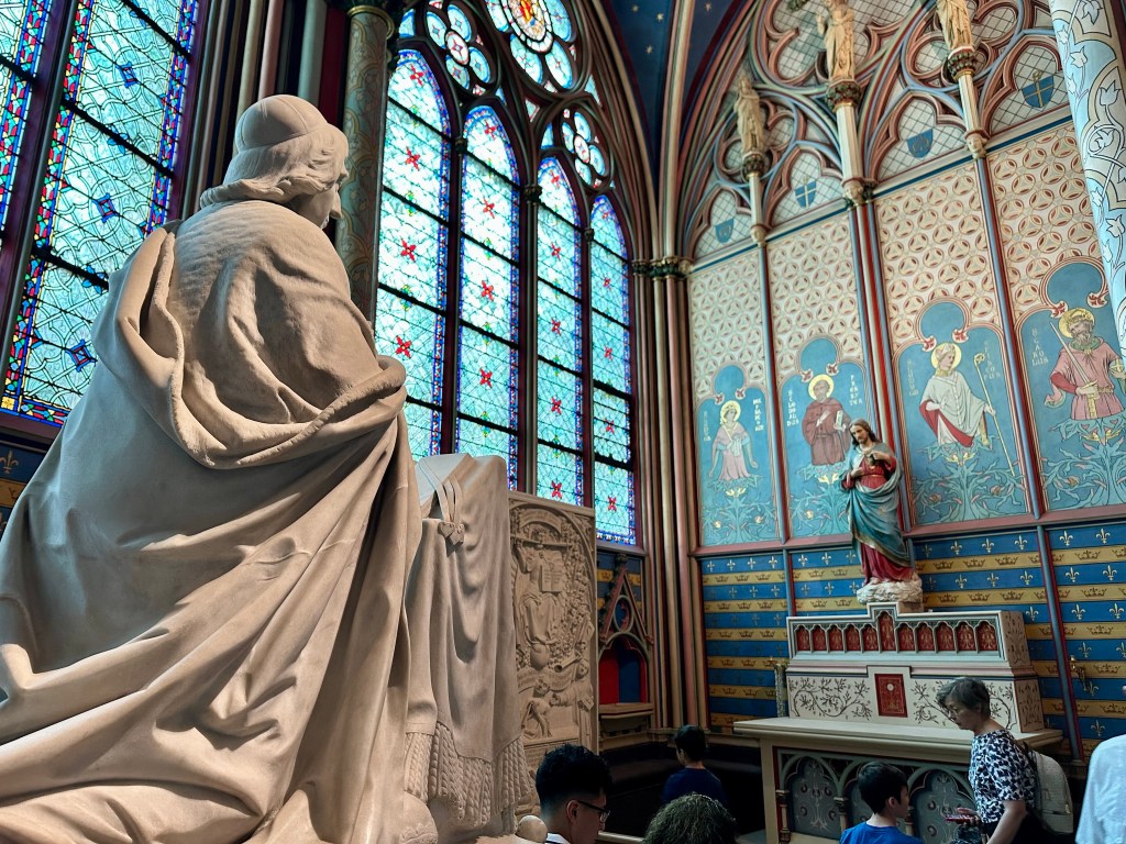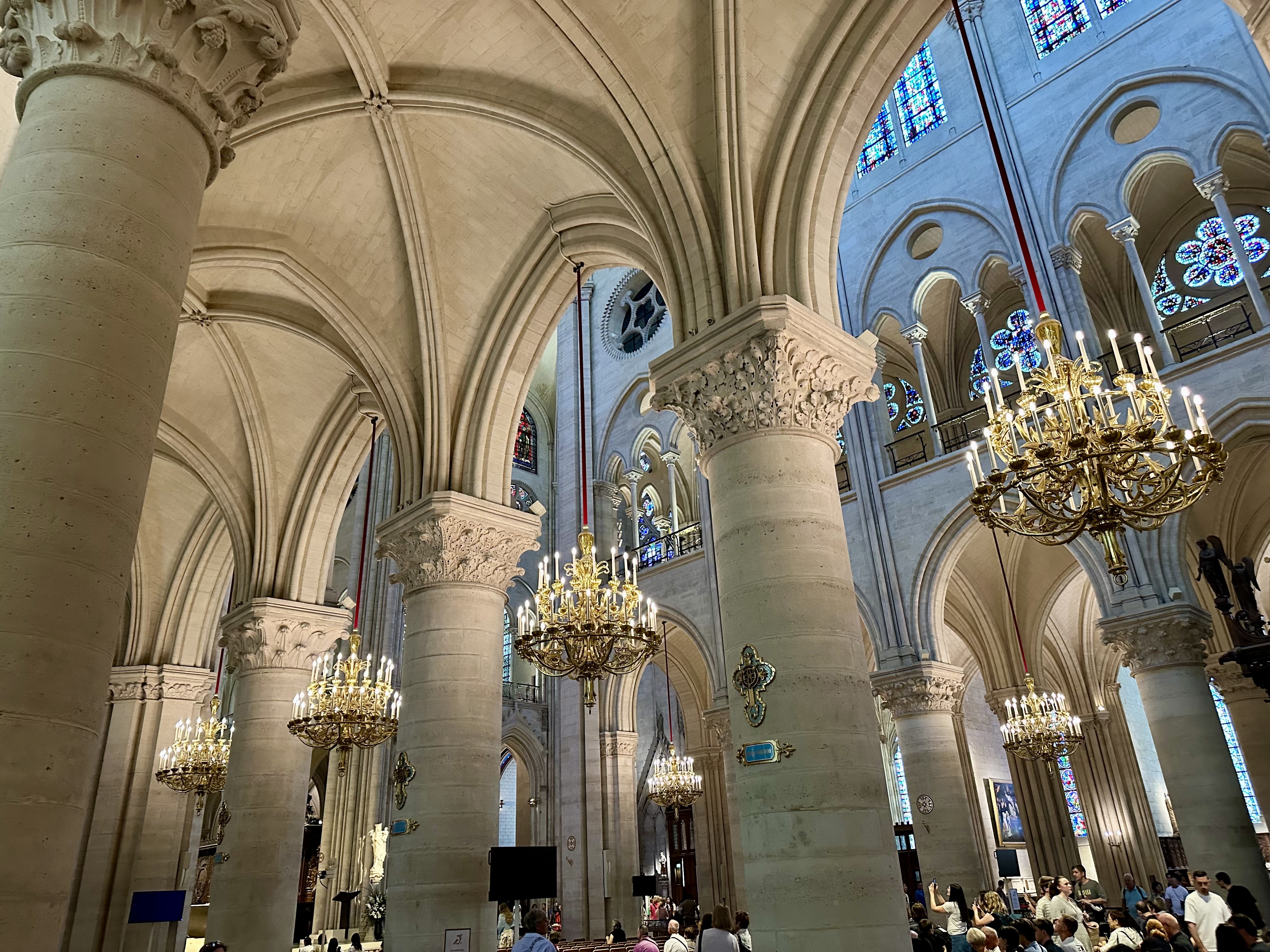 The next morning, we once again enjoyed the wonderful breakfast at the hotel before heading out for our day. Notre Dame was severely damaged by fire on April 15, 2019, and finally in December 2024 it reopened for visitors. We of course picked the most crowded day of the week for our visit, Saturday. I blissfully stood in line to see the magnificent church. The queue moved quickly.
