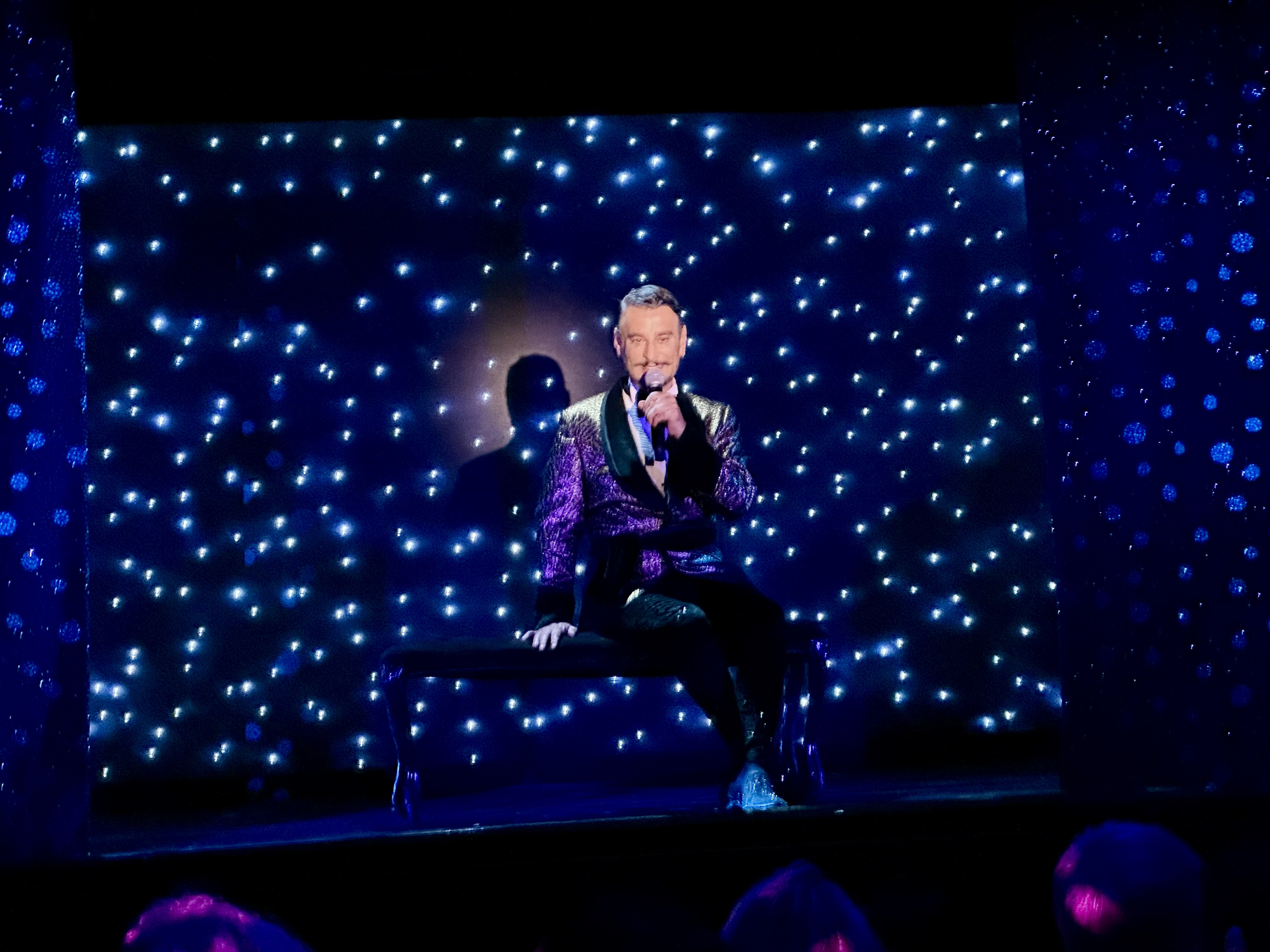 After dinner we went to the show and then on to “The Club” for the Abba sing-along, my choice. Sue and I really got into it. Afterwards, Sue suggested a nightcap at Eden so we headed up there after 11 pm. The bar ended up closing shortly after we arrived so the Eden Production Cast could so a technical rehearsal in costume (cue to cue for lights, sound, etc.). Guests were invited to stay if they liked. I have seen and been through many technical rehearsals as I have been involved with theater, but it was a new experience for Sue, Andy, and Boris.
