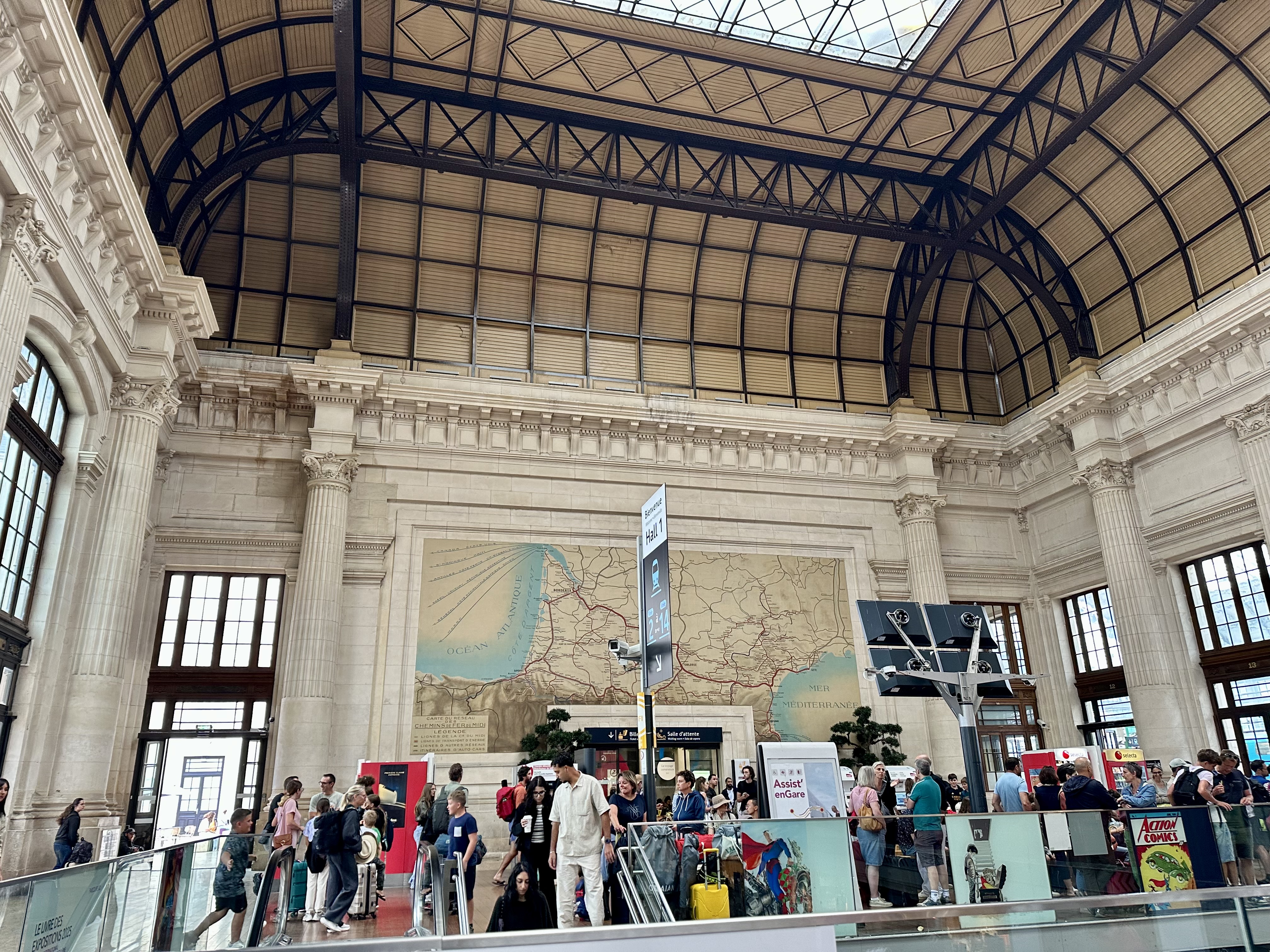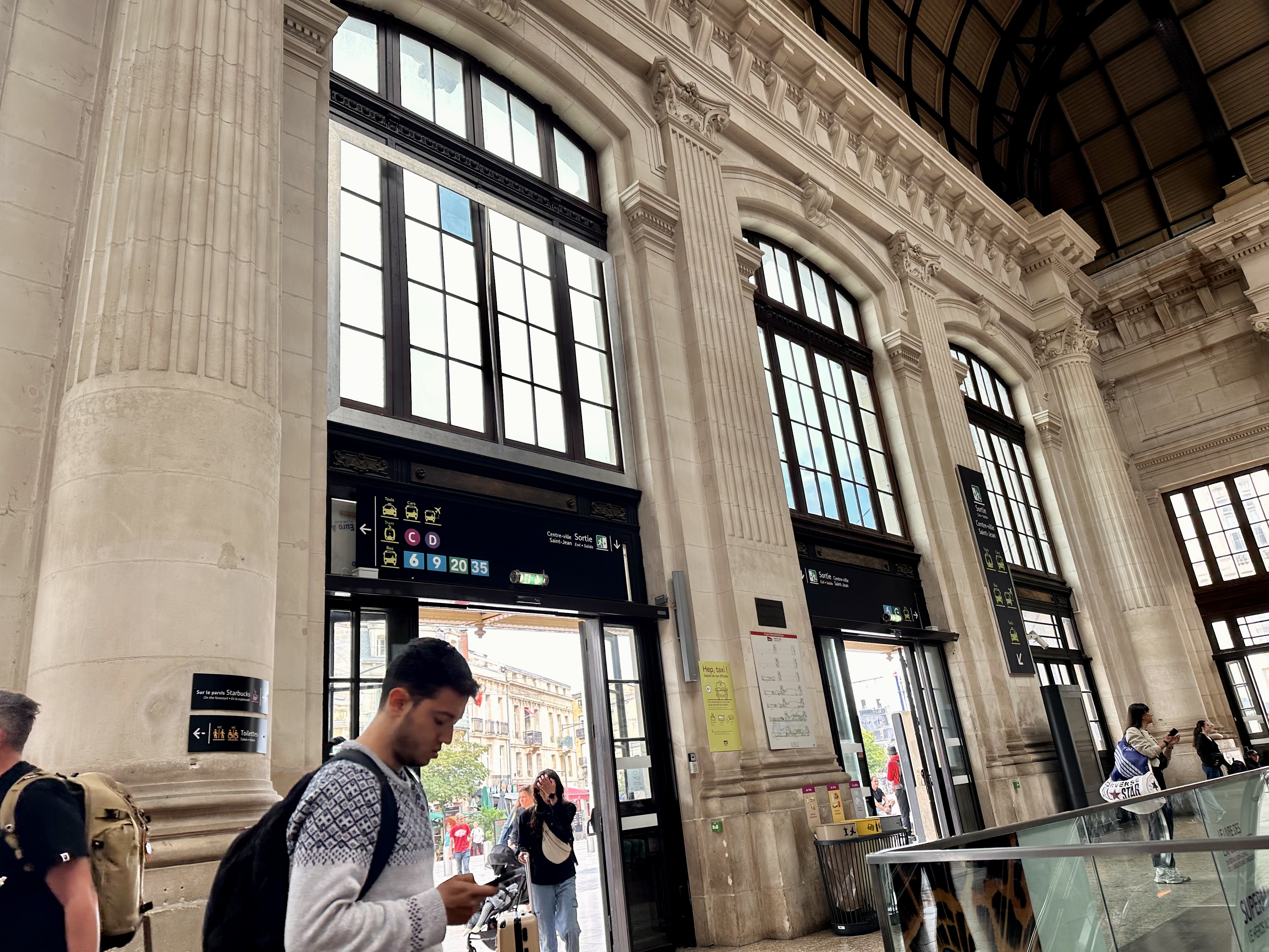On Sunday morning we had breakfast earlier than usual so we could head to the train station for our trip to Bordeaux. Everything is well-marked, but we had a lot of luggage (which I don’t recommend for train travel) so we had to locate the elevator or escalators when available.