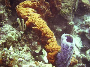 The junior diver in our group, Demetri, picked the second dive of the day based solely on the reef’s name, No Name. The site is also off Klein Bonaire on the North side. There is a white sand beach and a pirate ship ferried tourists back and forth to the shore on a dingy. (There is another cruise ship in town today.) This meant we had to be extra careful when surfacing as to not come up under the dingy’s motorblades.
