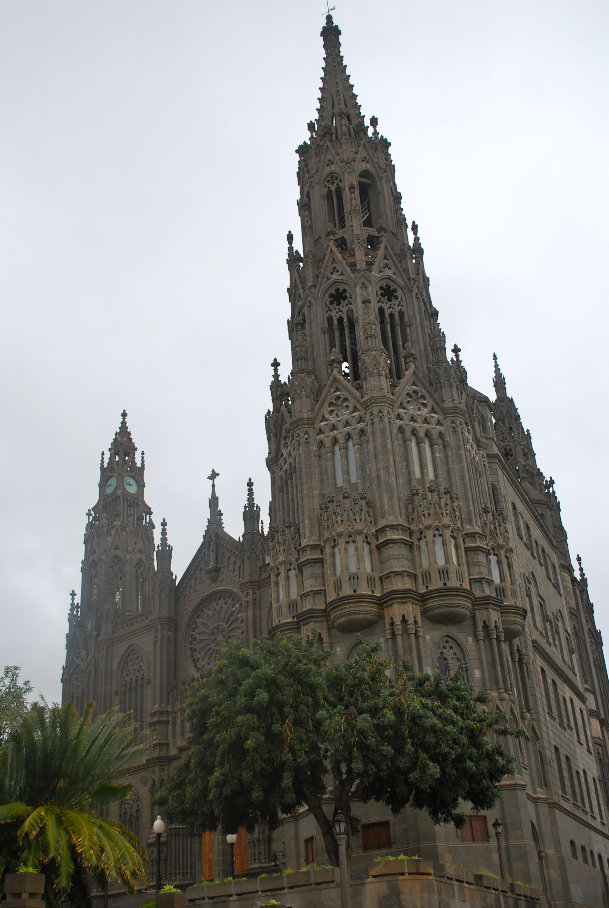 Today we are docked at the island of Gran Canaria, the third largest of the seven main islands that comprise the Canary Islands.   The Capital of the Canaries shifts back and forth between the islands of Tenerife and Gan Canaria.  We did a full day excursion leaving the pier at La Palmas and stopping first at the Cathedral at Arcus designed by students of Gaudi.  Anyone of has been to Barcelona has seen multiple examples of Gaudi’s architectural achievements.  Our next stop was the gardens at Jardin de La Marquesa where peacocks roamed freely among the beautiful flowers and plants.
