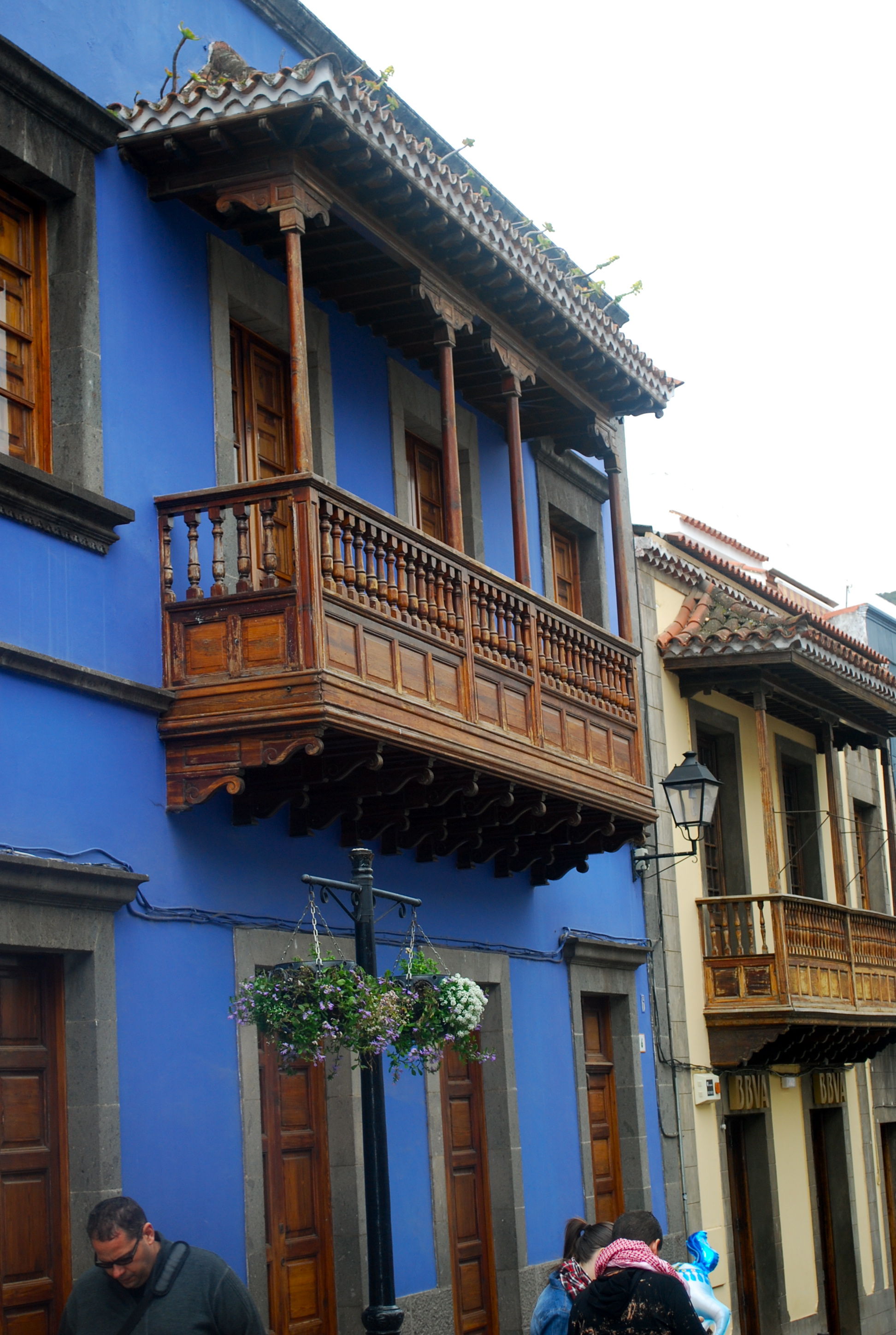 Leaving Arucas, we started our tour of the country villages in the mountains stopping in Teror.  The village featured colonial Spanish architecture with all the carved wood highlighted in the doors, window coverings, and balconies.  It is Sunday, so we could only tour the churches between masses.  The shops were closed, but there was a wonderful market filled with produce, meats, cheese, and flowers.  If you wanted cheaply made goods, those were also available.  Boris and I enjoyed a chimney cake, like a tall spiral funnel cake.  You could choose your topping-caramel, cinnamon, or coconut.