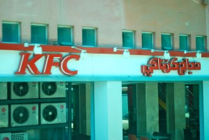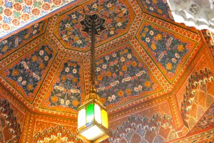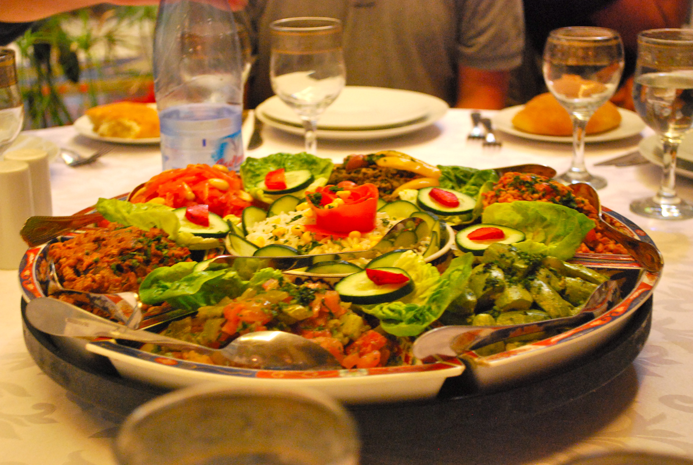 The first course was an appetizer platter with about nine different offerings. I liked the carrots, which looked like sliced red bell peppers, but tasted like candy. The second course was lamb that was so tender it just fell off the bone. After that another meat course was served with each of us getting our own small chicken to eat. This was followed by a platter filled with a mountain of fruit so high you couldn’t see the person who sat across from you at the table. Next was a platter of pastries all filled with almonds and the meal ended with mint tea or coffee. I was surprised we were not served dates.