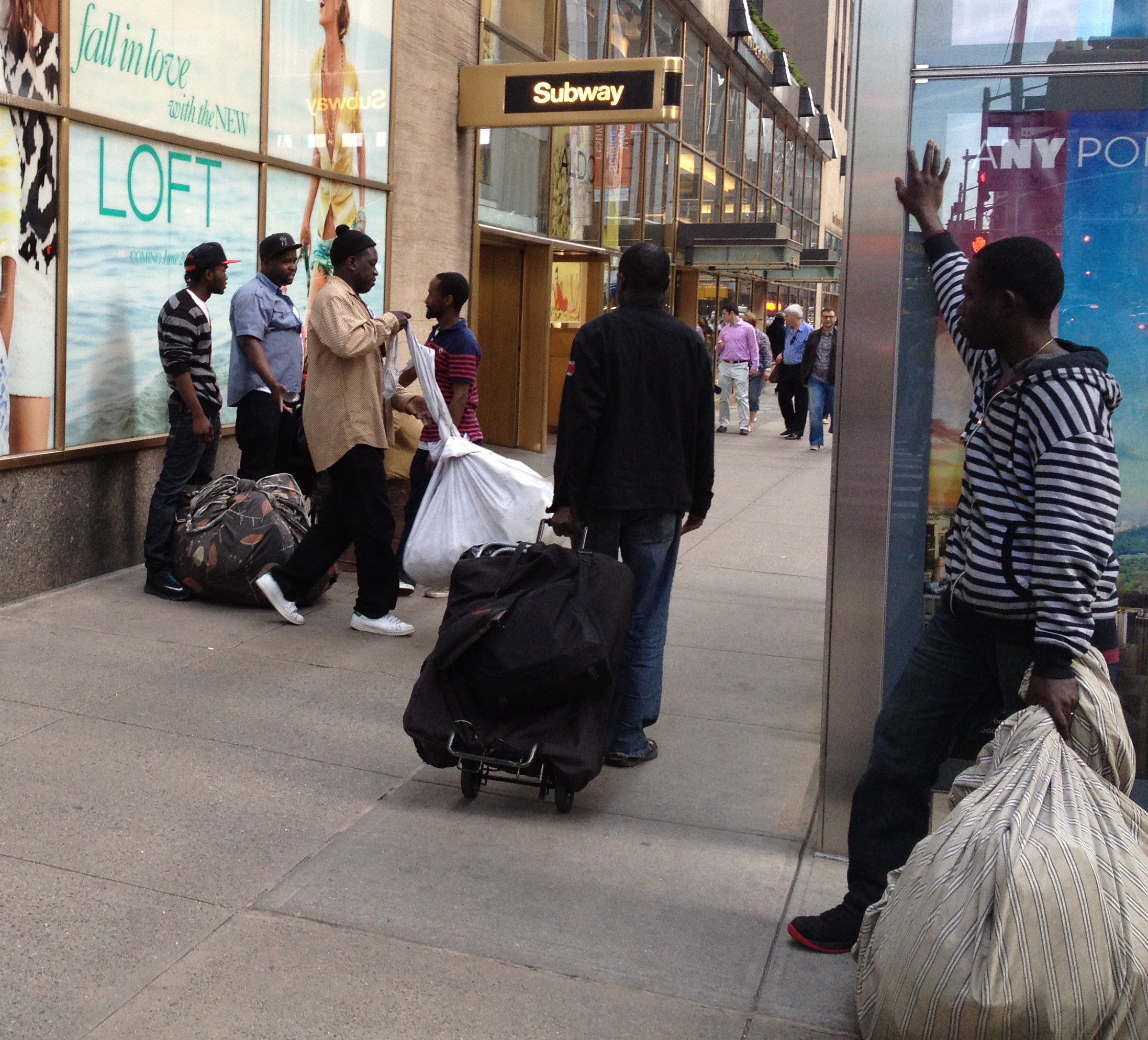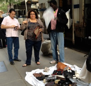 Sometimes, shopping in New York means purchasing your designer bags from these guys who hide their offerings in sheets or rolling suitcases for a quick get away if necessary. The “higher end” fakes are found in the back rooms off Canal Street, but these guys can be found everywhere.