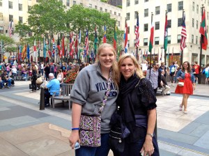 In the morning we packed up and checked our bags in for storage during the day. We stayed at the Marriott Marquis at the center of Times Square at 7th Avenue between 45th and 46th streets. I usually stay at one of the small boutique hotels in the Theater District-The Time Hotel, The Algonquin, The Iroquois. The Casablanca, with its free extended continental breakfast and free wine and cheese happy hour in Rick’s Cafe, is my favorite. It are able to avoid the crowds you find at a large hotel; the boutique hotel are also generally quite charming (and sometimes a little quirky). However, it is really difficult to put more than 2 people in the small rooms at the boutique hotels. Since we all wanted to share one room, the Marriott was a great choice. The room was huge by NYC standards. To check-in you take the elevators to the 8th floor. To use any of the elevators, you punch in the floor number on a panel in the lobby and it directs you to one of the elevators marked by letter. Don’t make the mistake of just getting in an open elevator. It may not stop at your floor and there is no floor selection panel in the elevator itself.