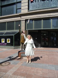 Doing the “Mary Tyler Moore/Mary Richards hat toss in downtown Minneapolis