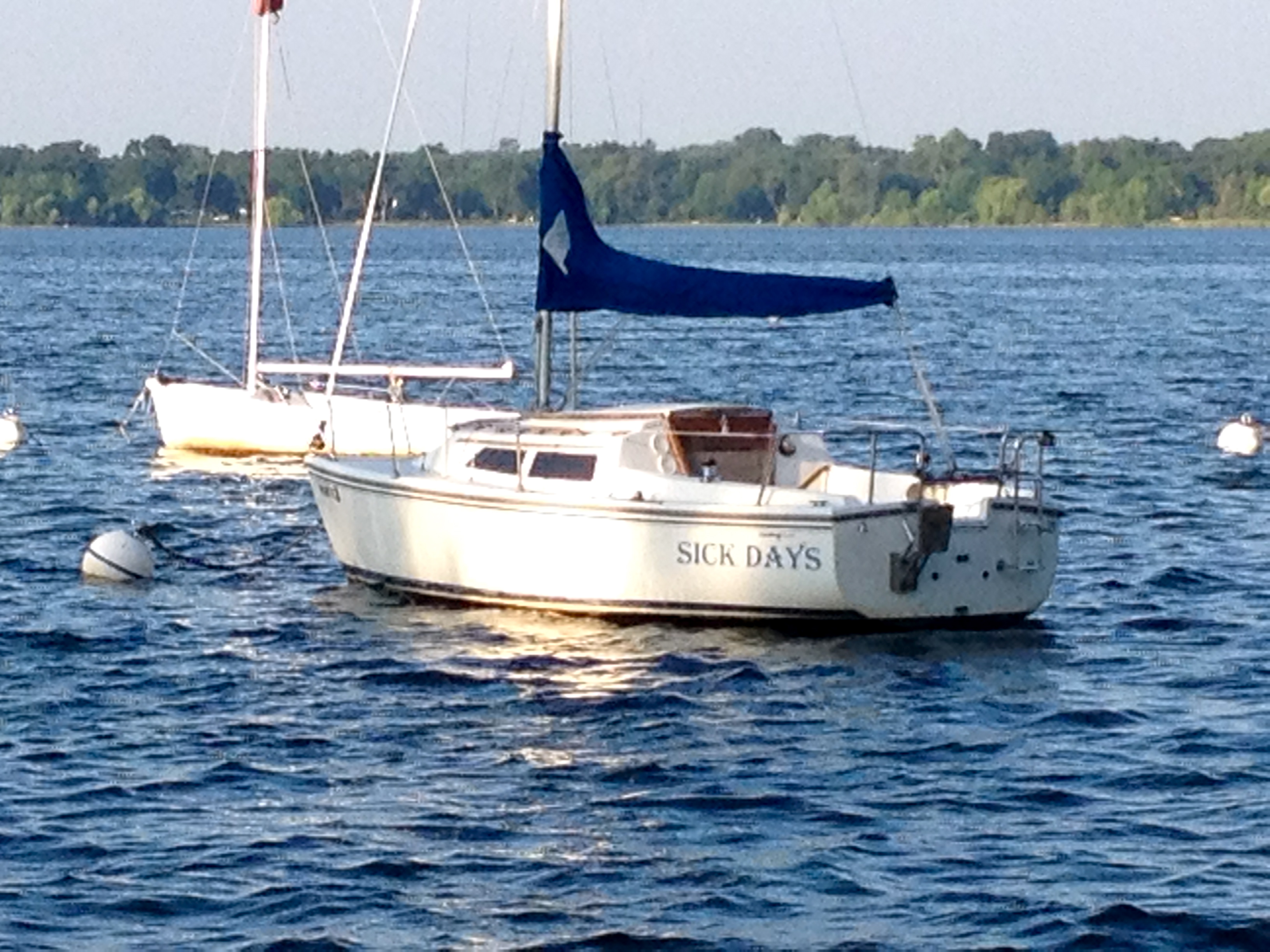 In addition to the wide and well-marked walking and biking trails, Lake Calhoun is a great venue with two small beaches with lifeguard stands, a marina, a fishing pier, boat launching sites, and a sand volleyball court. There is a nice view of downtown Minneapolis from several spots on the walk. I always enjoy checking out the clever names people give their boats and spotted a small sailboat in the lakeside marina with a great one, “sick days”.