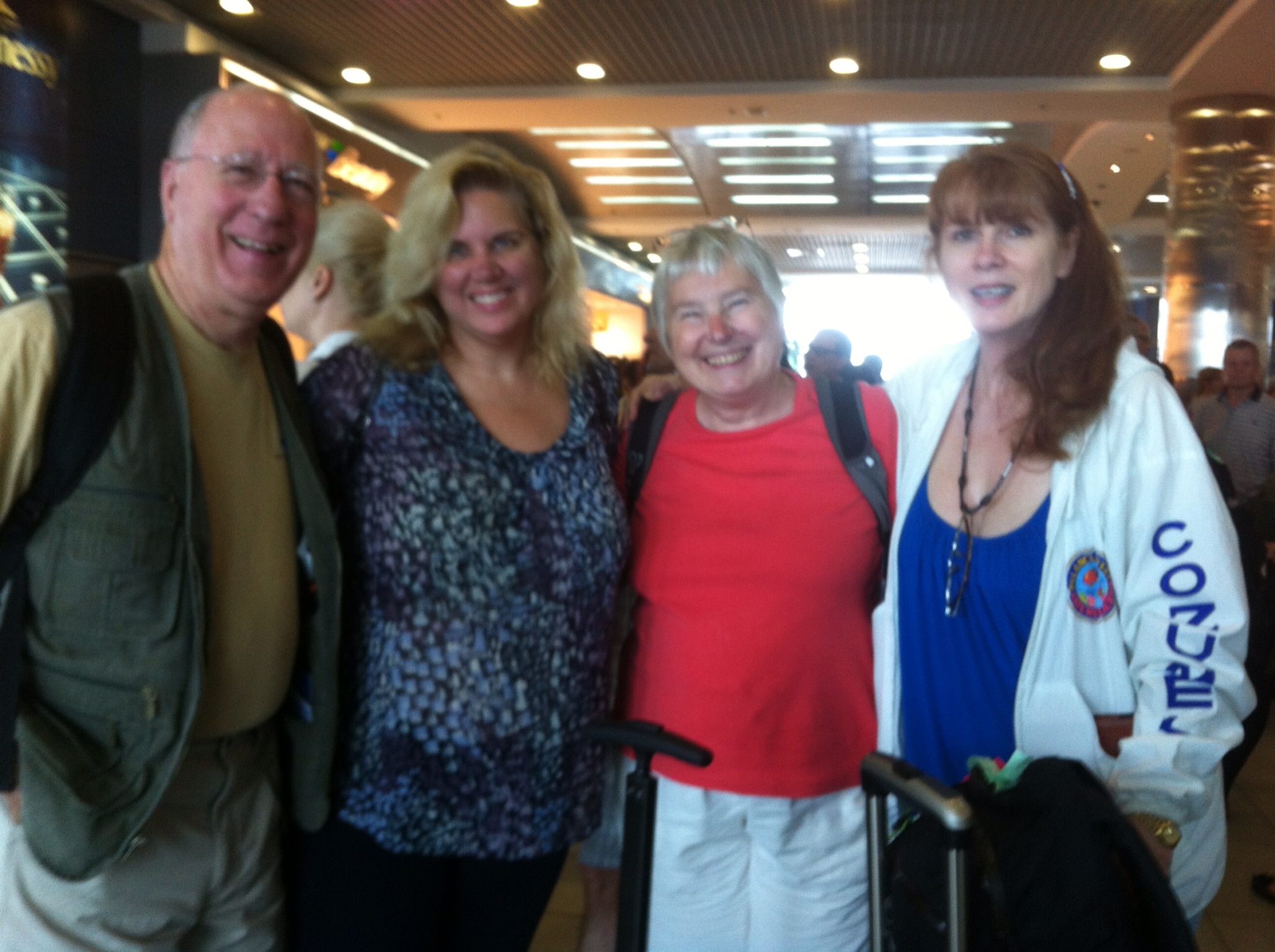 The second leg was another 12 hours, although the pilot got us in early. I would have traded that hour for a smoother landing. He landed on wheels on only one side of the plane, then shifted to the other side, before realizing that you could use all of them at the same time. Good thing it was still dark outside so we didn’t have to see anything. The airport at Singapore is amazing, but we are very early (before 6 am) so much is still closed. Donna and I got into the airport lounge which has internet so I think I will send this post. I am typing on my computer which she is enjoying the g-seat.
