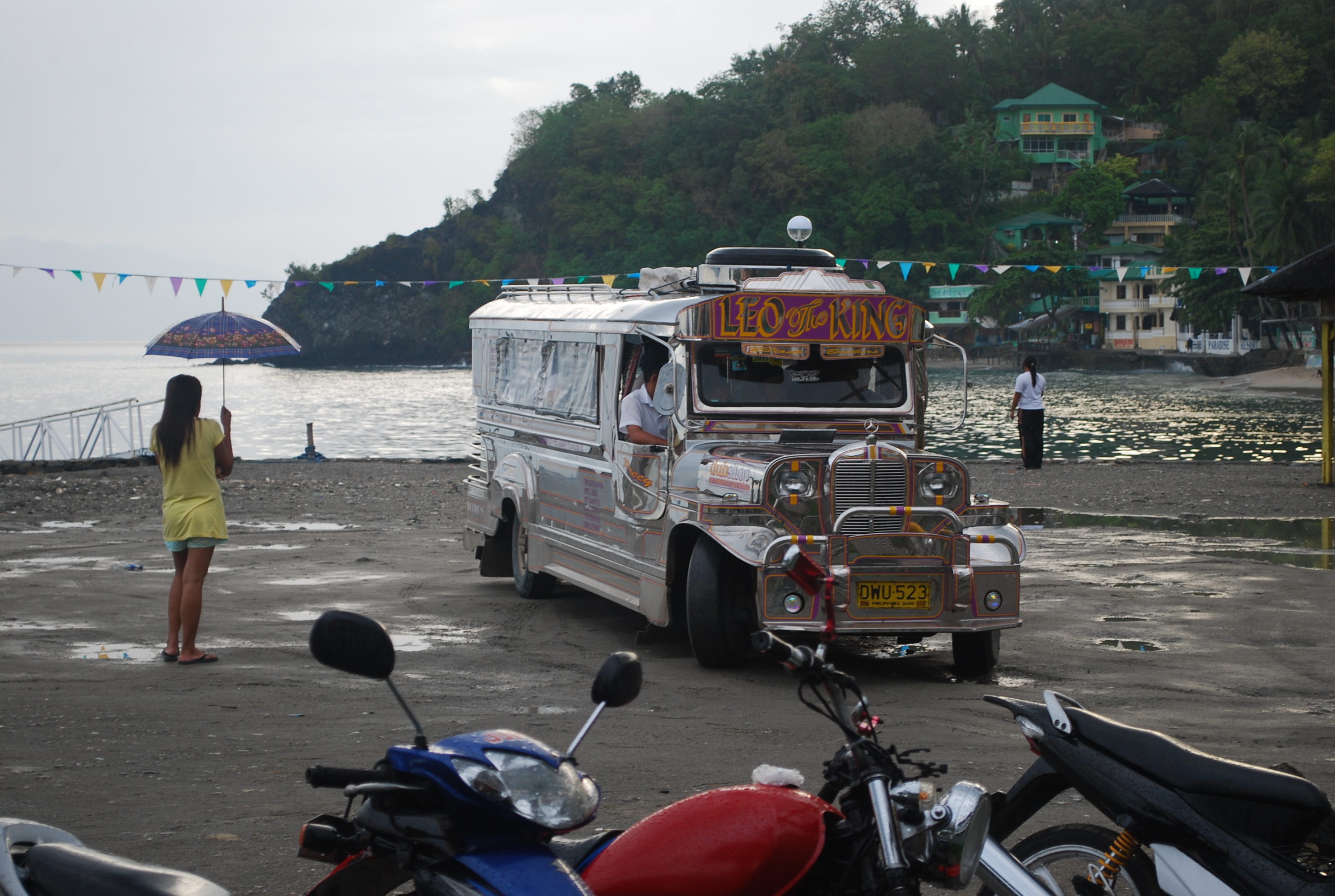A Jeepney (along with the tricycles) are the most common form of public transportation on land in the Philippines. They originated from the jeeps left behind by the United States at the end of WWII. This one was serving as a school bus. They are often quite colorful works of art.