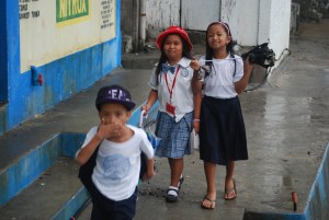 I learned later that each of the plaid uniforms is from a different private school (mostly Catholic schools). The children with the dark pants or skirts and white tops go to the public school. After watching a while, I saw different patterns at different times reflecting the slightly different schedules and the length of their bus rides.