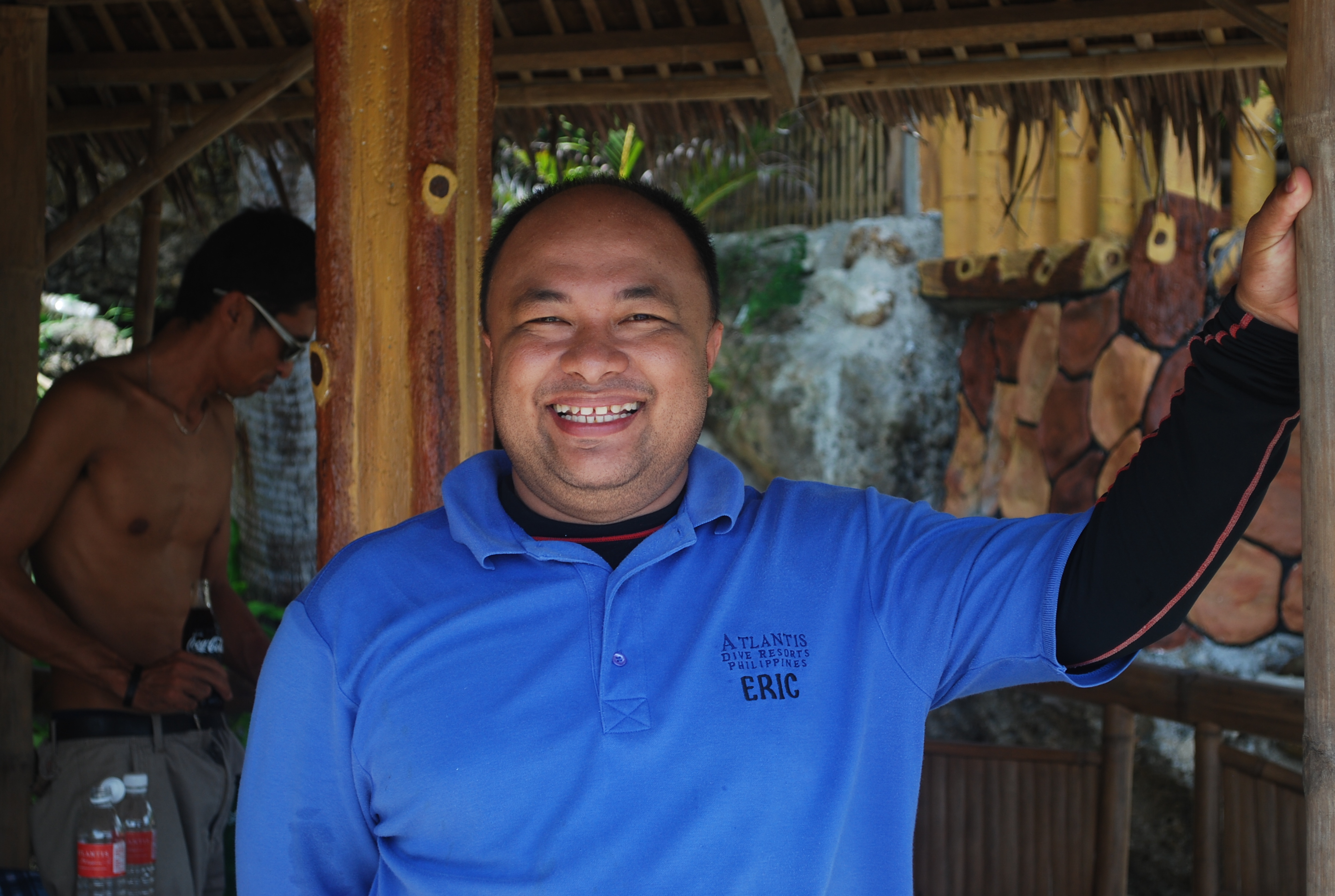 Eric, the lunch host from the resort, was there to cook for us and we enjoyed the wonderful jam rolls during the surface interval. As usually happens, the resort guests end up in one area and the dive staff in another. After my jam roll, I broke ranks and sat down with the boys who were eager to talk. Most of them are married with multiple children. The dive master with the most children had no wife but several “previous relationships”; I thought it was interesting that he used this terminology. He said he “started early”.