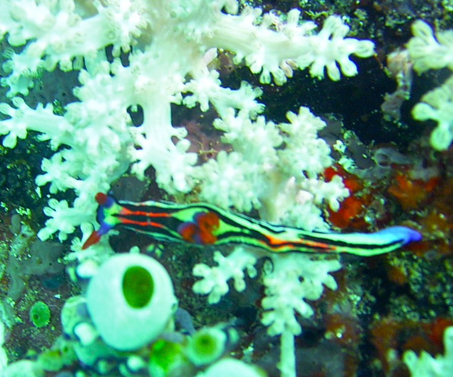 Today after an early breakfast we ventured out to Punta Verde, a small island about a 45-minute boat ride from Sabang beach. We went out on a larger boat from which we did a giant stride entry. We rode directly to the first dive site at the pinnacle just off the island. There was a lot of current at the beginning, but then things calmed down and we were able to enjoy this aquarium dive. The resort had offered a lecture the night before where they told us that the Smithsonian had selected Verde Island as the spot in the world representing the most variety of marine life.