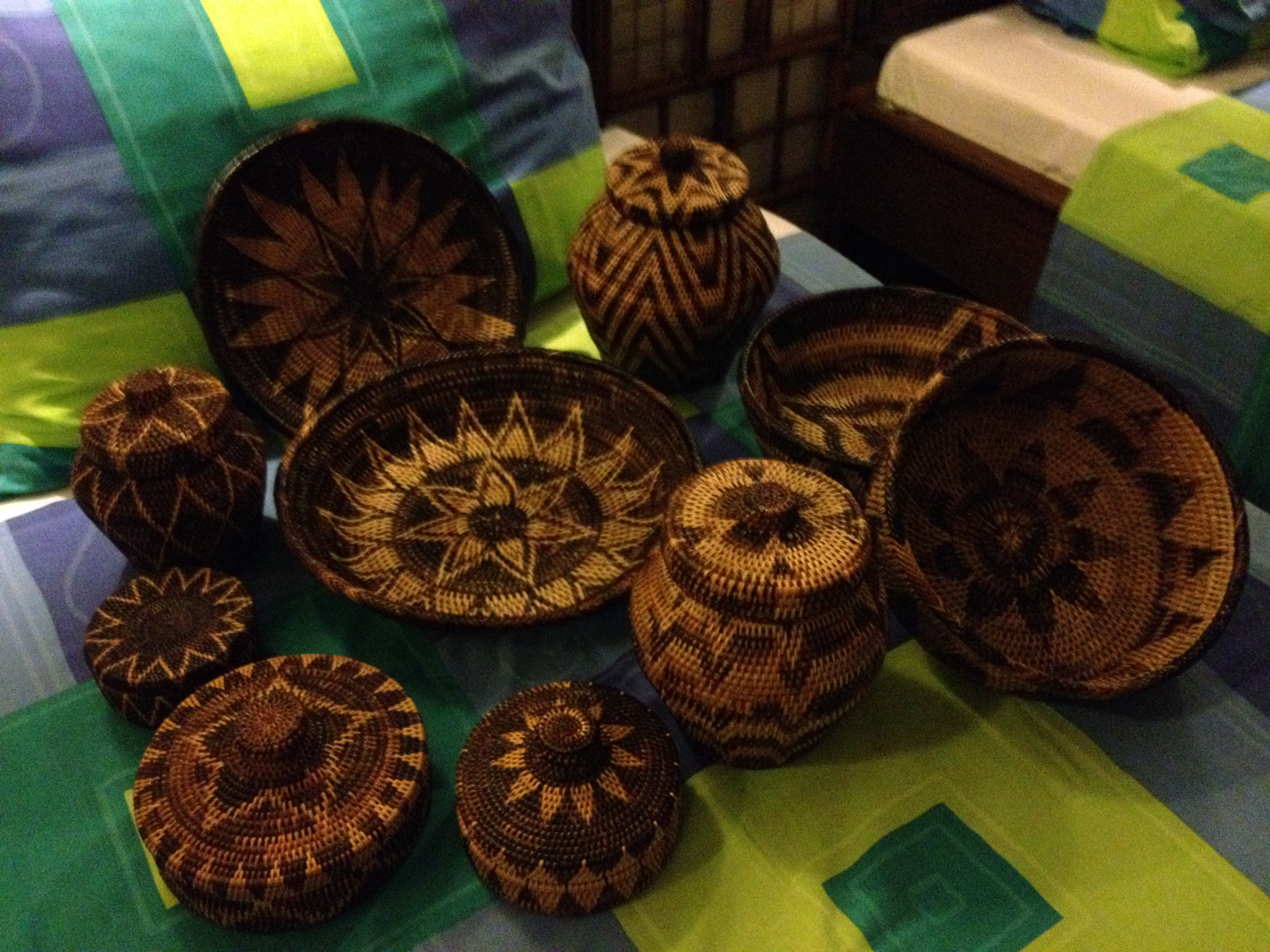 my collection of handmade woven baskets purchased in Puerto Galera and made by the nomadic mountain people of the area, the Mangyan