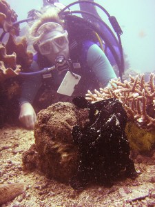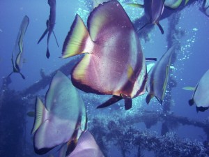 The wreck dive offered a line descent. The Alma Jane sits in about 110 feet of water. We are all diving nitrox so we need to watch our depth and bottom time carefully. There was a wonderful school of batfish and several scorpionfish at the wreck. The Princesses all love wreck diving.