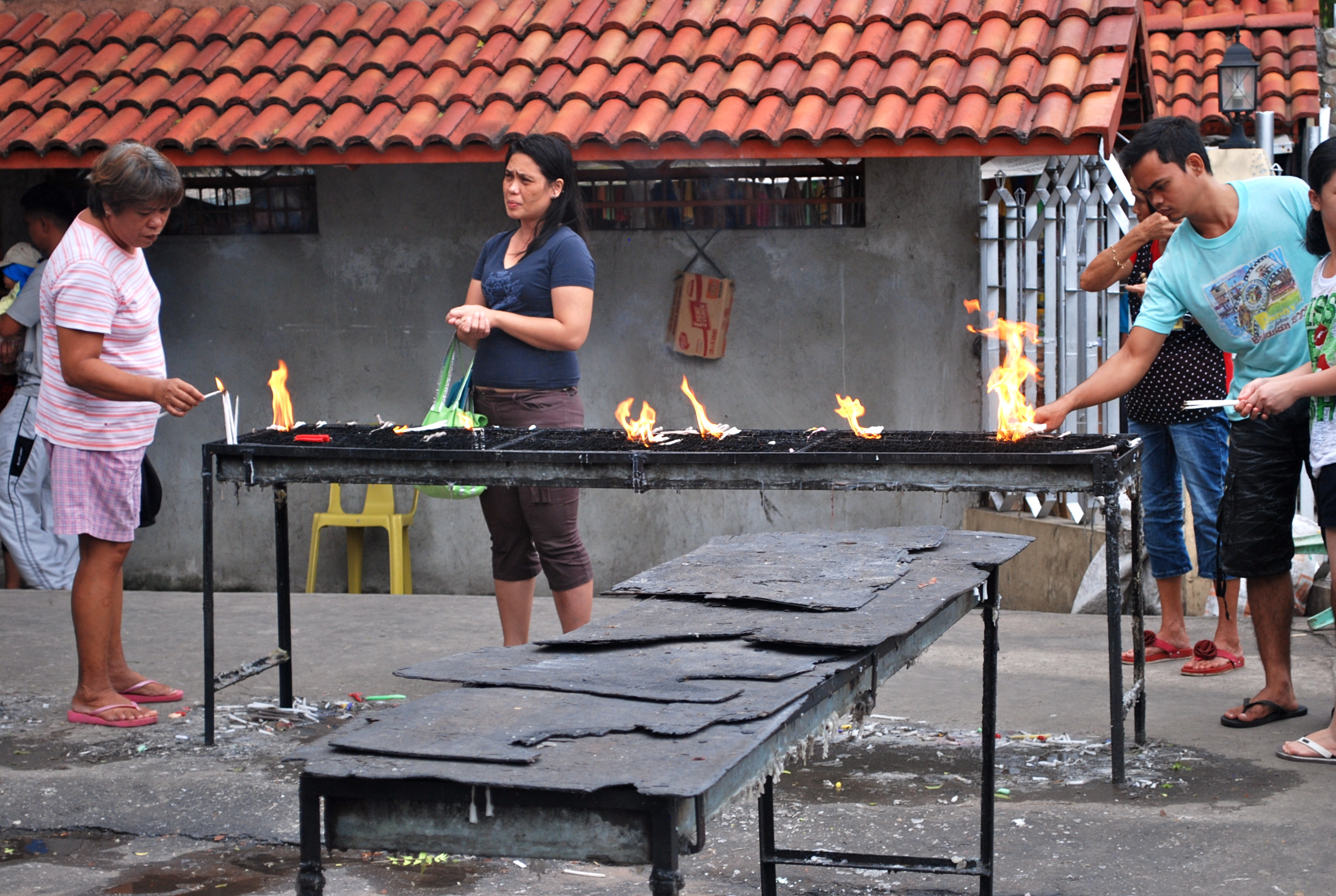 The market is next to the city bell tower which looks to be about the age of the village church we visited yesterday. Next to the tower is a stone grotto for the Virgin Mary and open air candle stands. There are also venders selling candles and others offering a foot massage, an interesting combination. The grotto is next to the Dumaguete Cathedral.