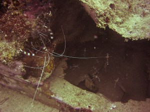 banded shrimp with babies. Mom really protected the area from fish trying to enter the wreck here.