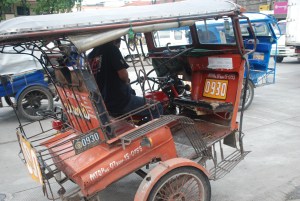 The tricycles around the airport all had plastic coverings added to protect the driver and passenger from the rain. The plastic was so worn that I don’t know how anyone could see through it. I bet there are more accidents on rainy days due to the lack of visibility through the plastic than from the rain or wet streets. Not sure if I ever described the tricycles. They are basically a motorcycle with a covered sidecar. I have seen as many as 7 people in one, but others say they saw up to 12. They are used as a taxi when traveling short distances and each has a registration number on the back.
