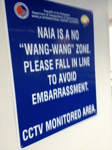 I saw these signs at passport control in Manila both coming and going. I have no idea what “Wang-Wang” is and frankly was afraid to ask.