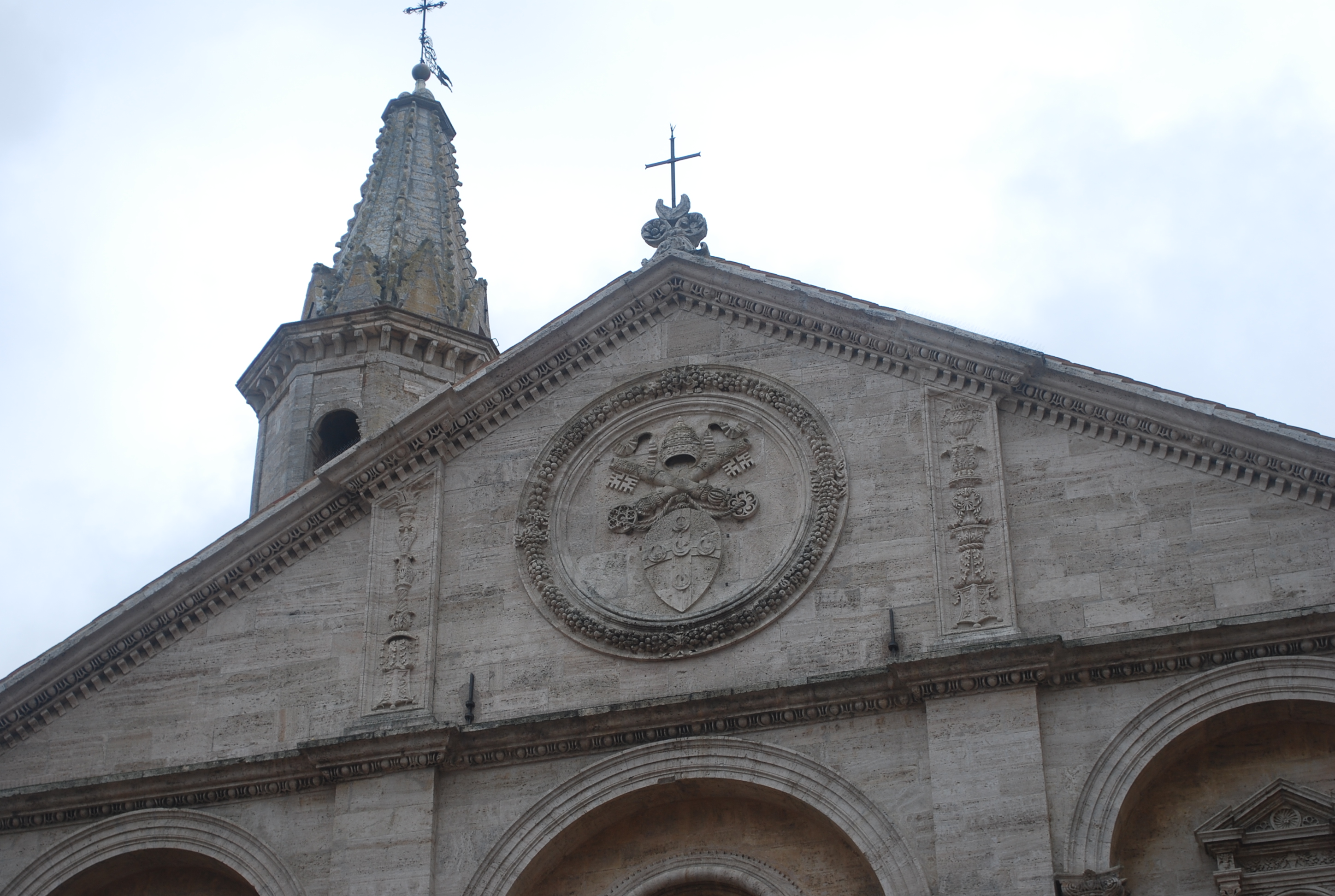 Parking is always an issue, but since it was early we found a spot just outside the old city. Boris referred to this as a “model town”. The guide books refer to it as “an exquisite Renaissance doll house” and an “utopian town”. Pope Pius II took his home town of Corsignano and created the “first masterpiece in modern town planning”. His architect was the Florentine Bernardo Rossellino. With the addition of a cathedral, the pope renamed the city Pienza after himself. The papal seal is found on the facade of the cathedral. I found the city charming and perfectly situated.