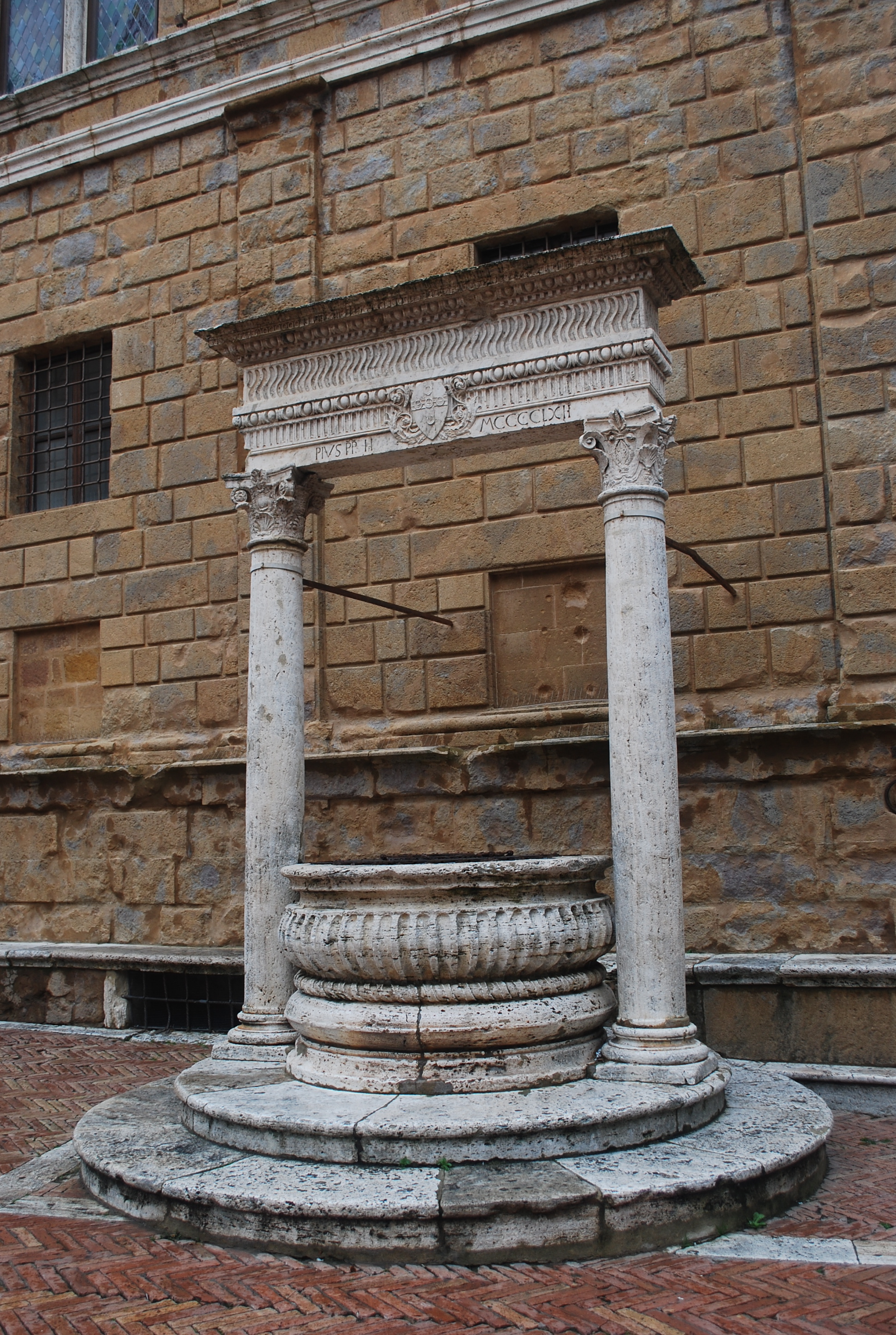 The well on the cathedral square, Piazza Pio II where you will also find the Duomo (cathedral), Palazzo Piccolomini (the pope’s home), and the Museo Diocesano.