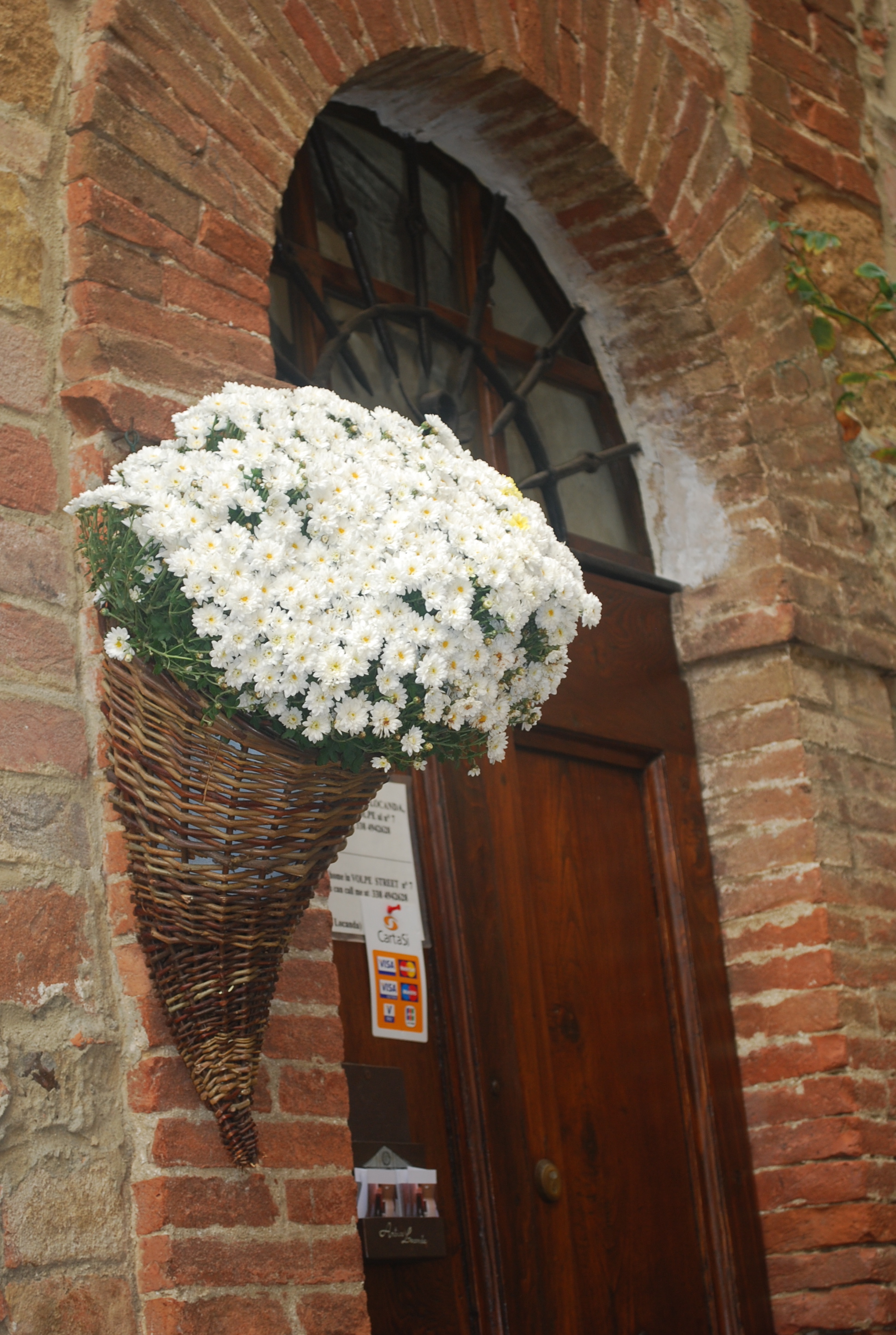 A more fragrant option-mums in a cornucopia in Pienza, Tuscano, Italy. Actually, do mums smell? Everything in this area of the city smelled like cheese so I am not sure.