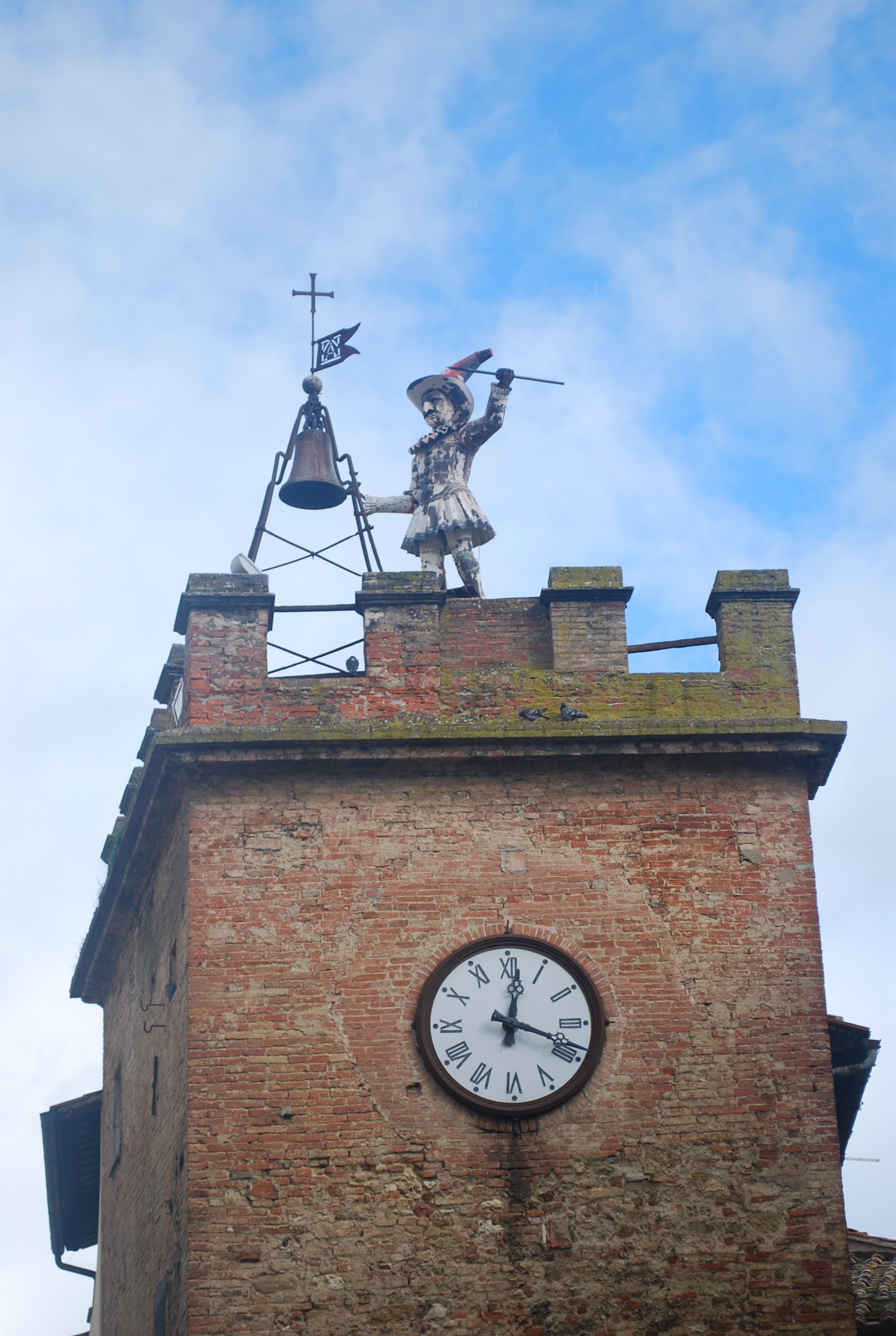This figure adorns the clock tower across from Chiesa Di Santa Agostino.