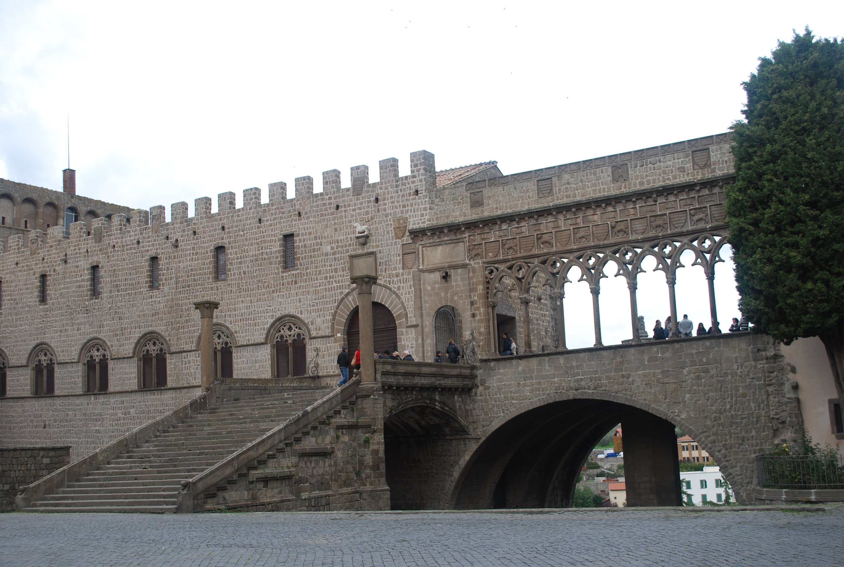 The papal residence and loggia as seen from Piazza San Lorenzo in Viterbo, Lazio, Italy.