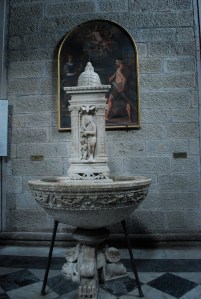 While the temple and base were later additions, this Baptismal font by Francesco da Ancona is from 1470. In the Viterbo Cathedral. Lazio, Italy.