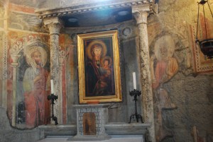 Viterbo’s Cathedral is on the site of an ancient Etruscan city (some of the Etruscan ruins are marked as you enter Piazza San Lorenzo) and a reputed temple dedicated to Hercules. Viterbo became a papal residence as early as 1145, when Pope Eugene IV deemed it a safer seat for papal authority than Rome. The Papal Palace was built in 1255-1266. When Clement IV ended his papacy there, a three year vacancy lead to what is considered to be the first Conclave in the history of the Roman Catholic Church (think white and black smoke). The Conclave was held here in Viterbo.
