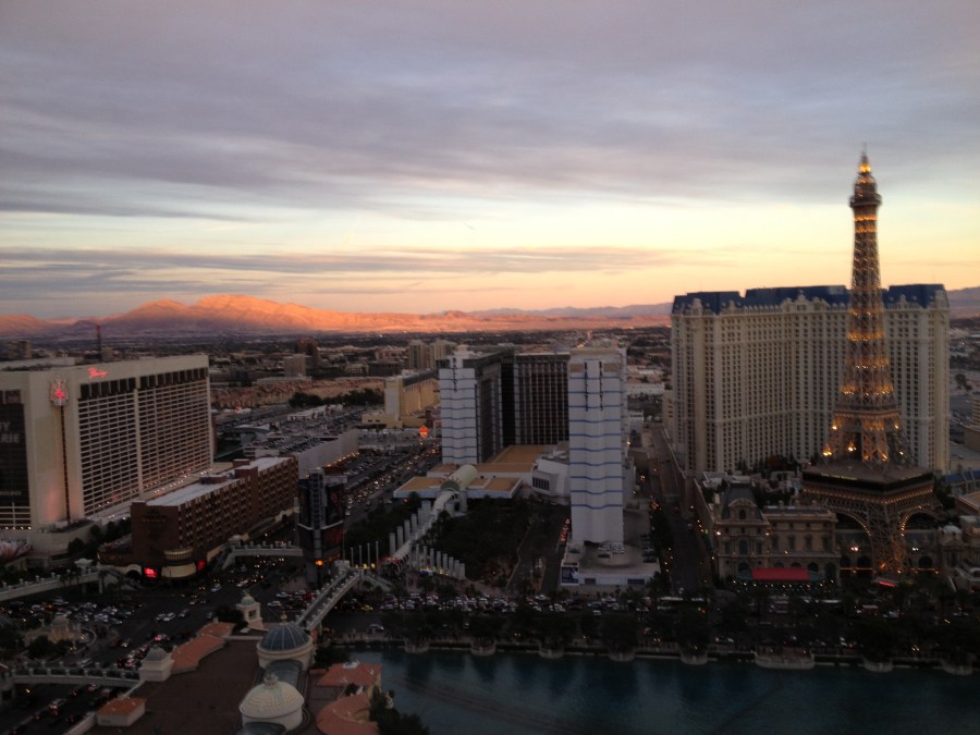 View from our Penthouse Suite in the late afternoon. We could see the mountains in the distance silhouetted against the sunset.