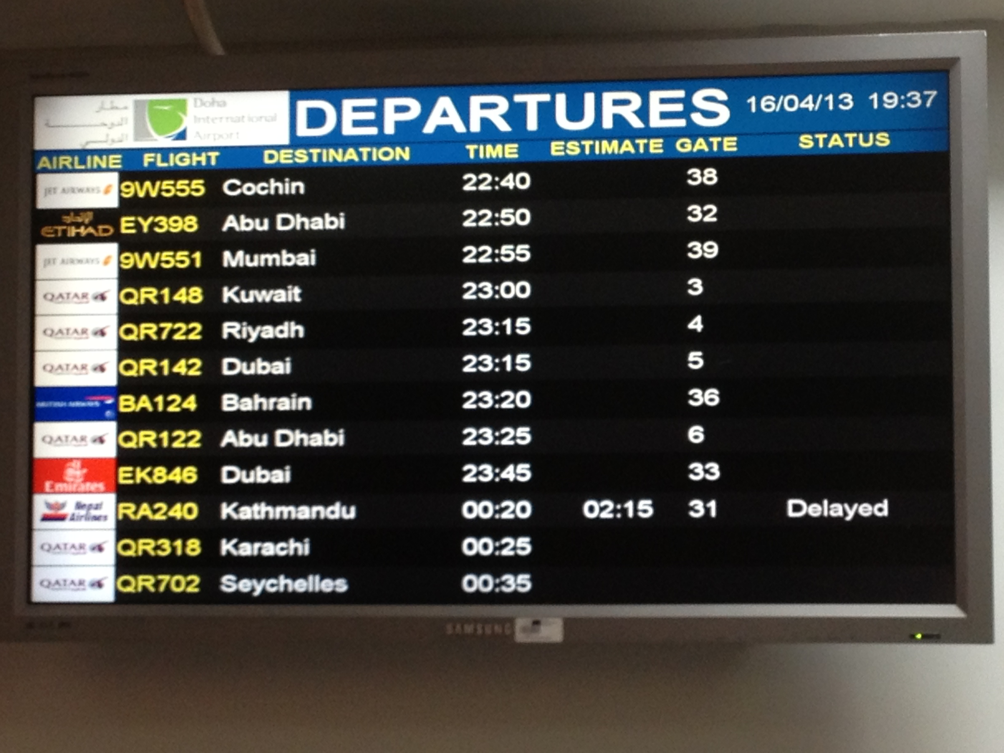 The terminal in Doha is nice, but the attractions limited. In spite of the late hour, most everything is open and there are lots of people around. Ironically, there were more people in the airport at midnight (almost every waiting area is full) than when we arrived at 6:15. Our flight leaves at 2:25 am and it is one of many departing at that hour. Clearly this is a connection airport. There are lounges, but we have no status on Qatar. You can pay to enter a lounge for $40 per person.