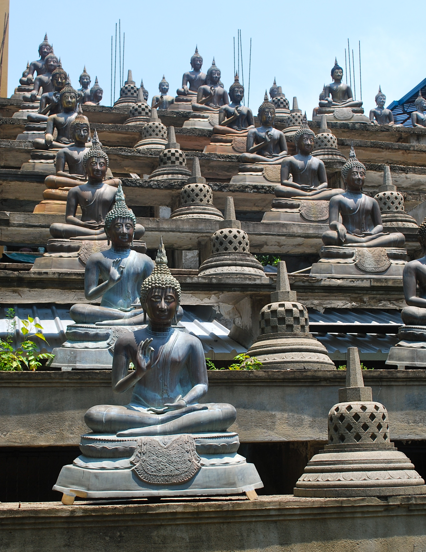 Statues of buddha at the Gangaramaya Temple in Colombo, Sri Lanka.  ©Jean Janssen
