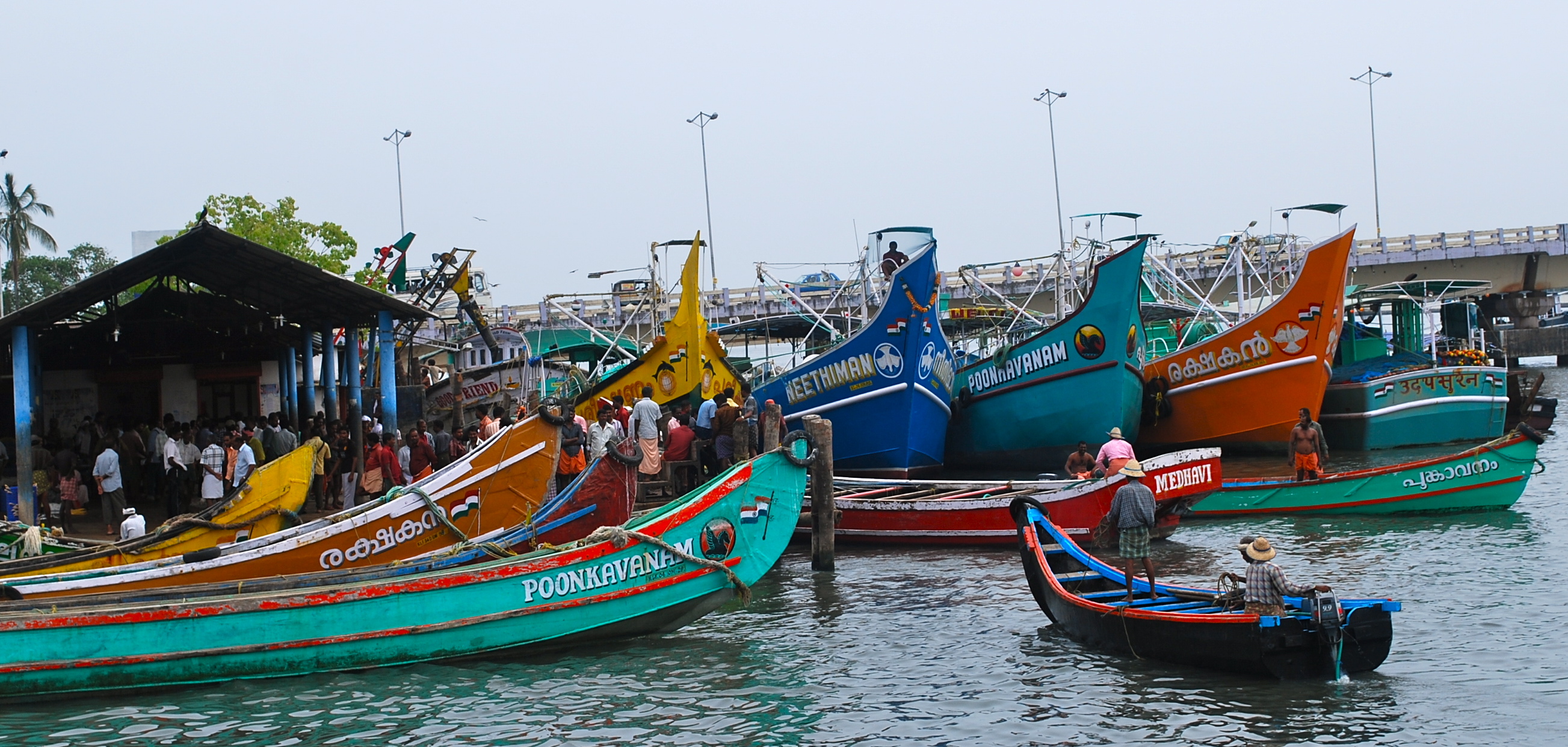 Named fishing boats at Kochi, India. Note one is St. Michael. The other has a picture of Jesus. Names are reflective of the owner’s religion.