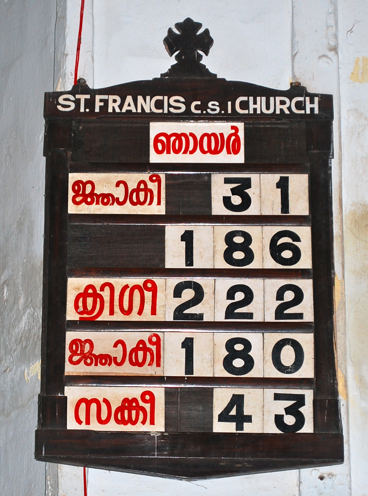 After our touring boat ride, we docked at Fort Kochi (Cochin) to see this historical seaport, the first European colonial settlement in India. The Portuguese remained a stronghold here from 1503 to 1663. It was later occupied by the Dutch and still later the British. St. Frances Church was Catholic under the Portuguese, then Dutch Reformed, and later Anglican during the British occupancy.