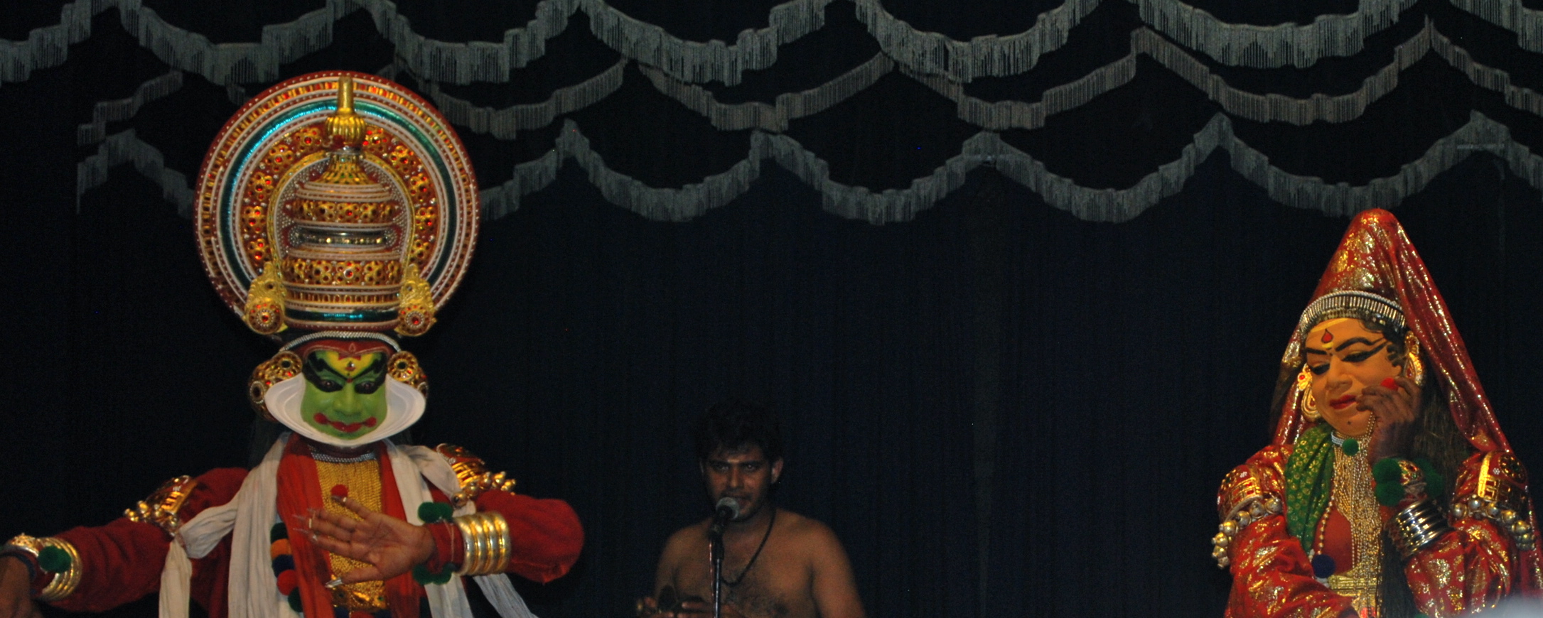Kochi, India. The chanter appears in the middle of the two “actors”.