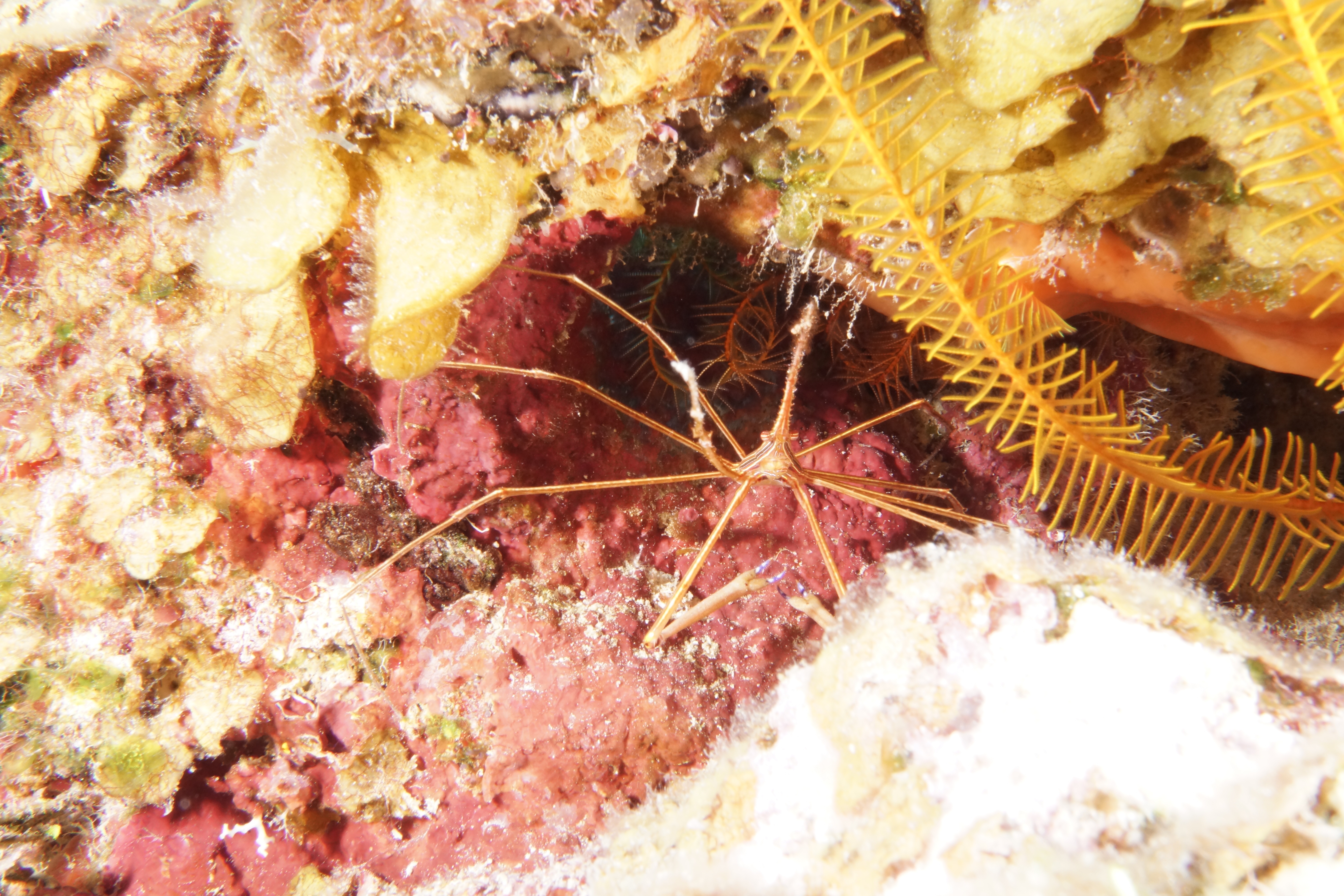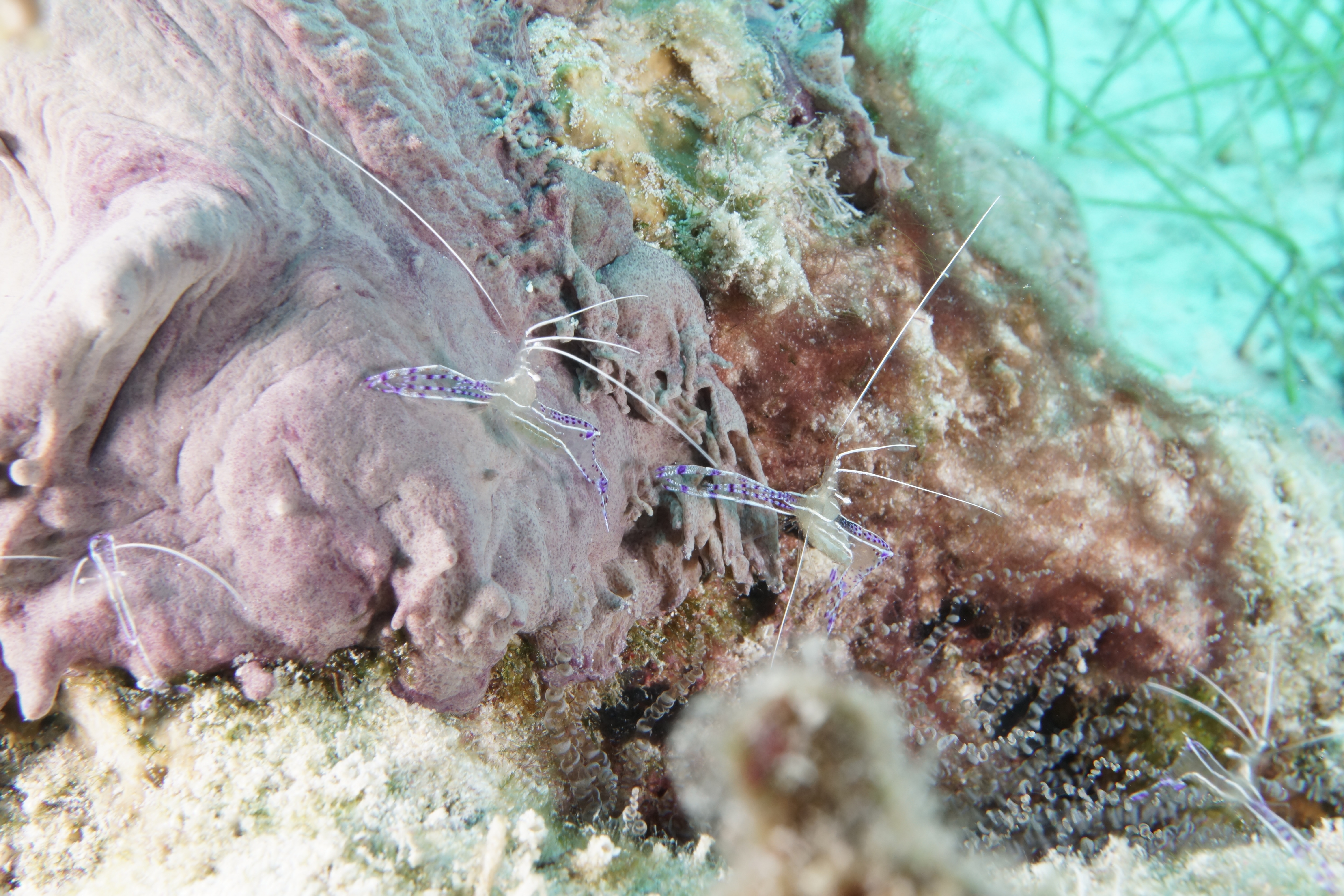 Multiple pederson shrimp on the coral reef.  They are each only a few inches long. ©Bill Fugua