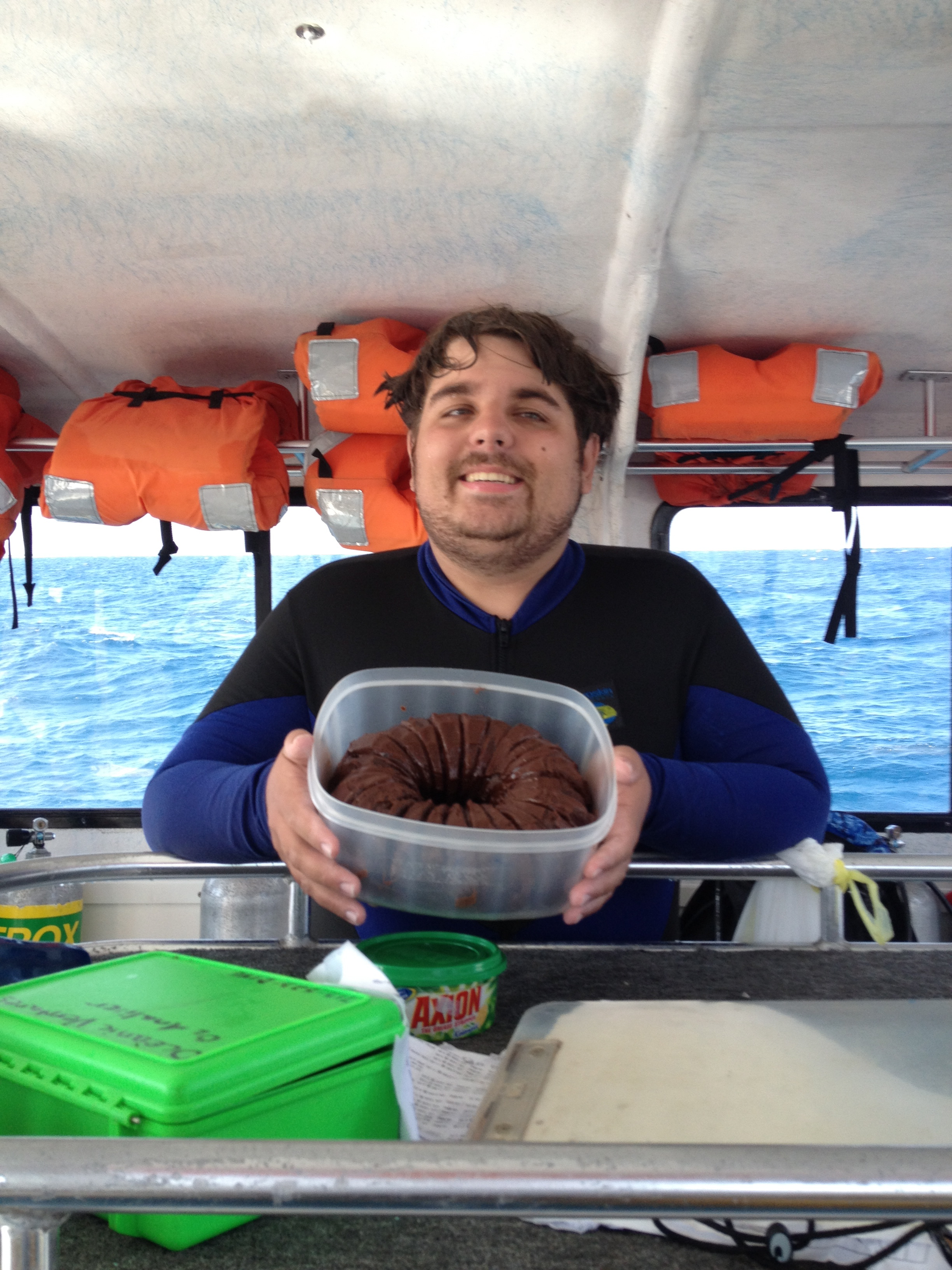 Turneffe Flats provides a cleaning service as part of the dive fee so once we identified our gear for the staff (and took along our mask and fins) we could head back to our rooms to pack our personal things. The boat captains and dive masters leave this evening so they can have a 36-hour break before the next group arrives. Rocky brought his cake back to share with the divers and staff during the send off.