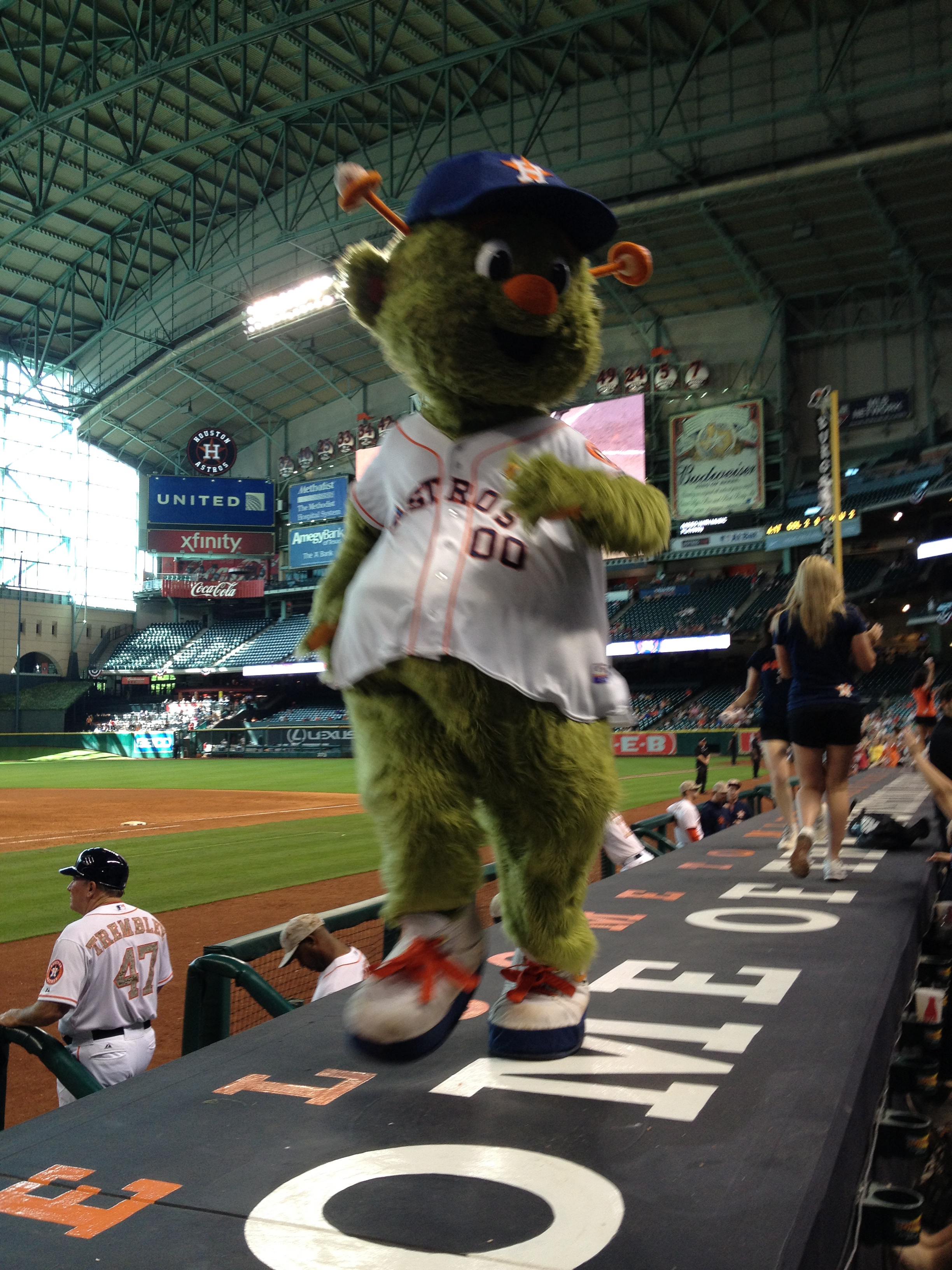 From 1990-1999, the Astros mascot was Orbit, a large furry green alien whose name and origin pay homage to Houston’s association with NASA and the city’s nickname of Space City. In this, the Astros’
