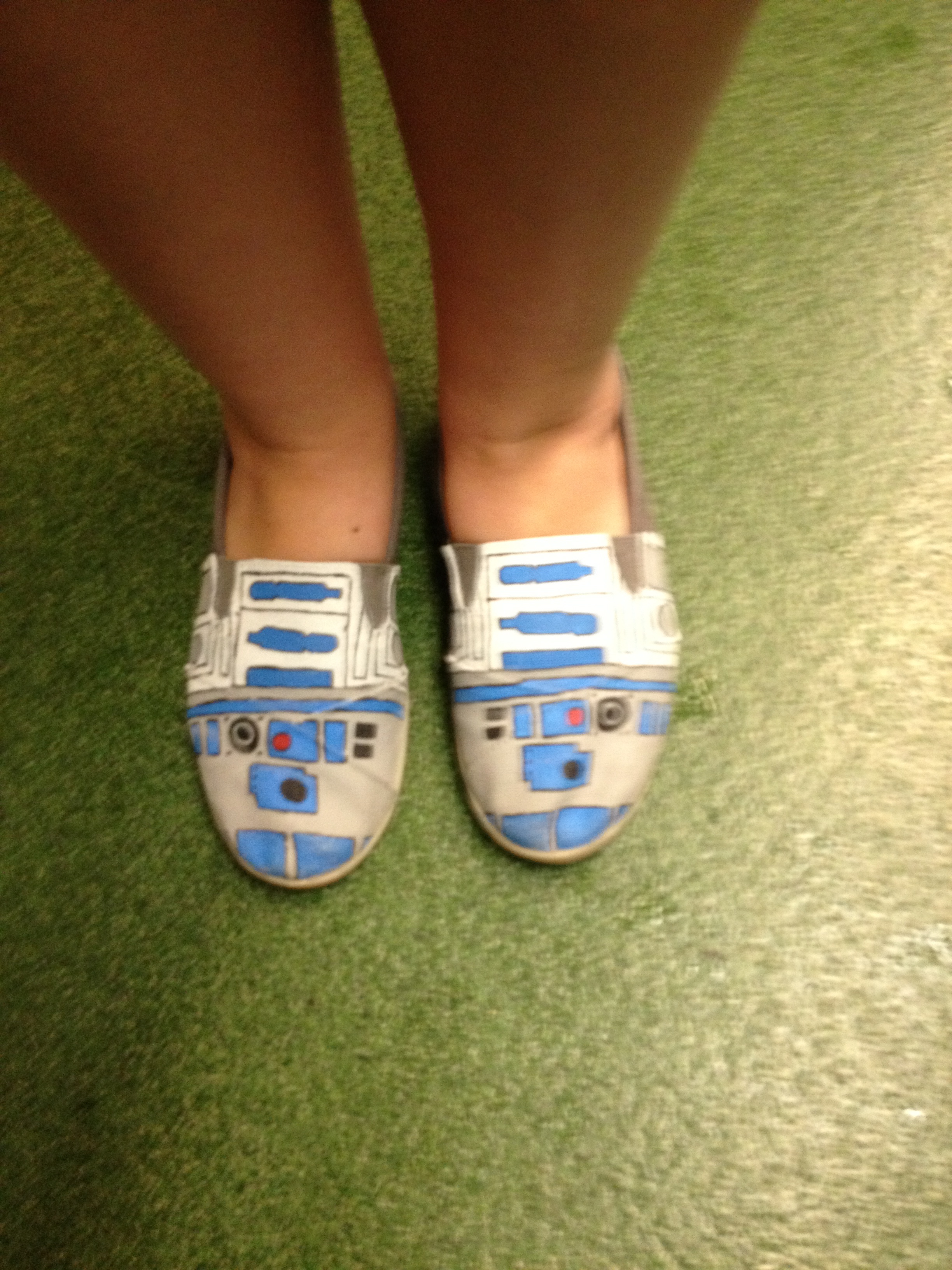 What an awesome experience. (Many thanks to Janice who does fan/crowd control on our row of seats.) We continued to have fun on the way out. I ran into the newly engaged couple and spotted one fan with these cool R2D2 shoes. Who can just go home after that? We went to the Original Ninfa’s on Navigation to celebrate with dinner and margaritas-nifaritas, strawberry, and sangria soaked. There was a crowd so we had to wait a while to order which meant more time for chips, salsa, and drinks. This fan stuff-particularly when you are on camera :)-is rough.