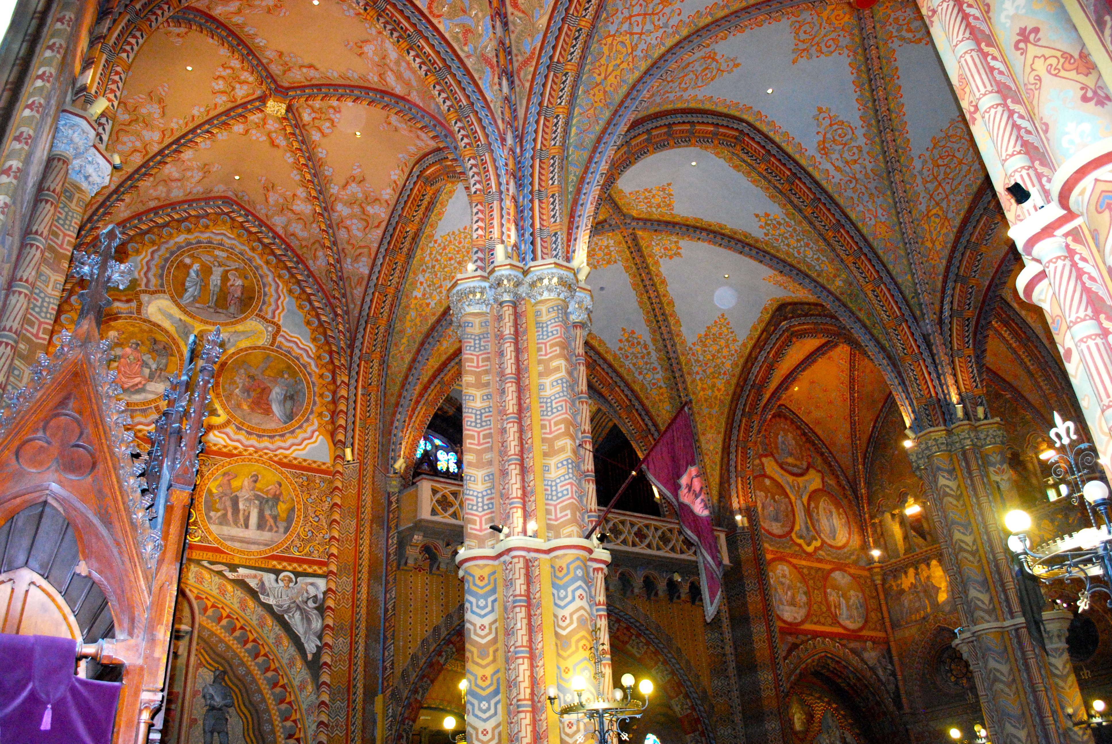 Next we drove over the famous chain bridge with its imposing lions. Legend has it that the sculptor realized his error in not remembering to carve tongues in the lions’ mouths on the day of the dedication and was so distraught that he jumped into the river. On the opposite side of the Danube is Buda. Immediately after crossing the bridge you see the funicular to the top of the castle district near St. Matthias’s Church. Our bus took us closer and we walked the short distance to the church. Last time we were here we stayed at the Hilton next door. The church was under restoration then.
