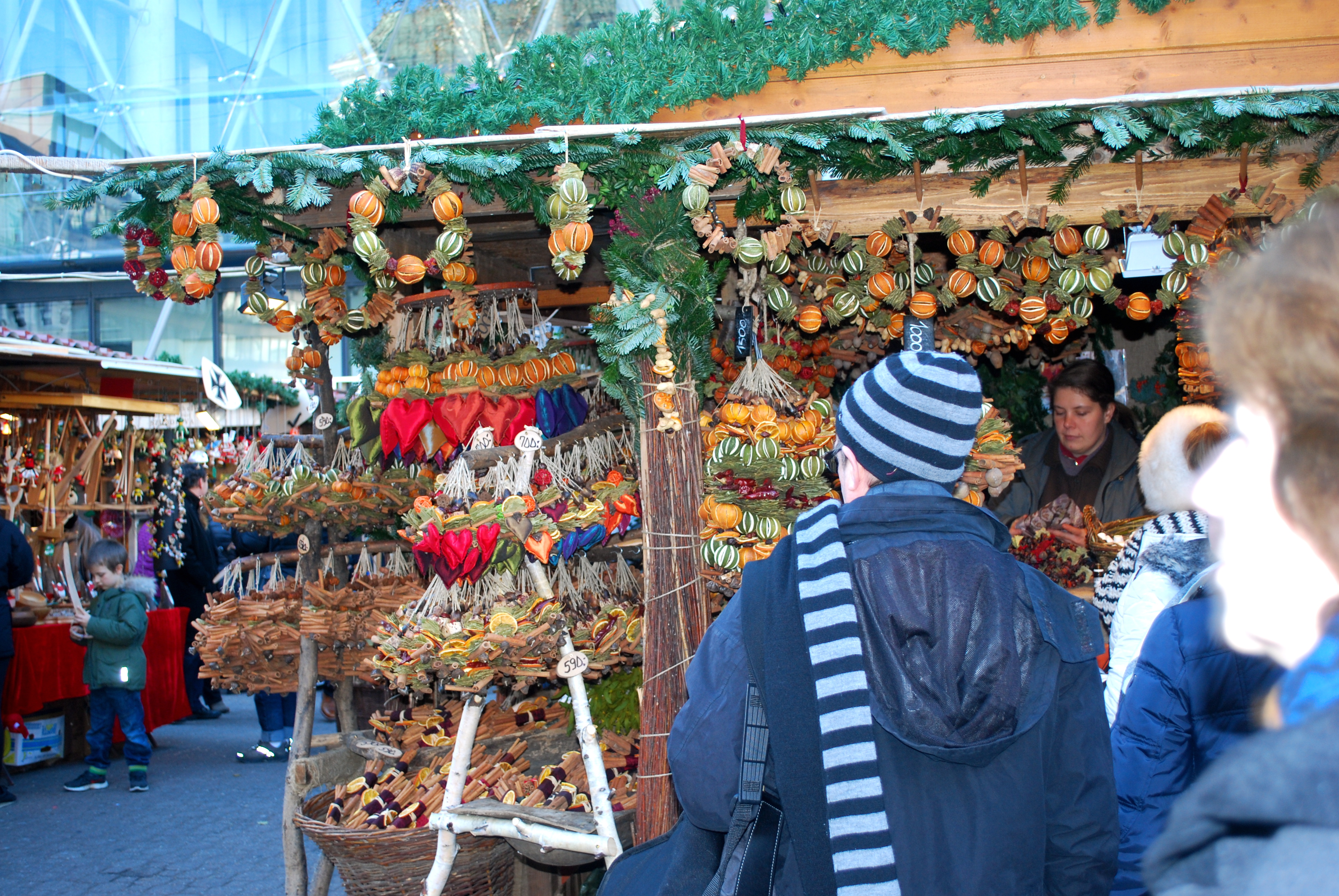Returning to the bus, we drove back to Pest to visit the Christmas market, still in its infancy. I expected lots of Christmas ornaments, but it was mostly food and handicrafts. Boris and I both bought hats-mine felt fashion, Boris’ in a style worn by the Hungarian kings. I got some wonderfully decorated gingerbread cookies and a beautiful ornament made from cornhusks. Boris and I both sampled the hot, spiced wine and the local sausage. There was a huge advent wreath in the market square as well as a huge Christmas tree just at the end of the shopping street.