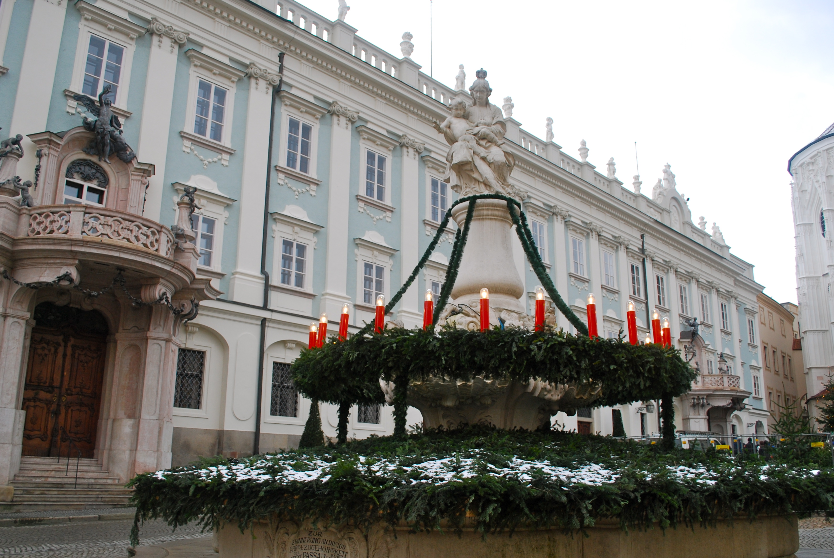 At perhaps my favorite spot in the whole city, a large advent wreath encircled the fountain. Originally the wreaths had 24 candles to represent all the days in December leading up to Christmas. There were designed in response to children’s pestering questions about how soon Christmas would be. In years when candles were scarce, the number was reduced to 4 to represent weeks. Four is the typical number of candles seen on advent wreathes today.