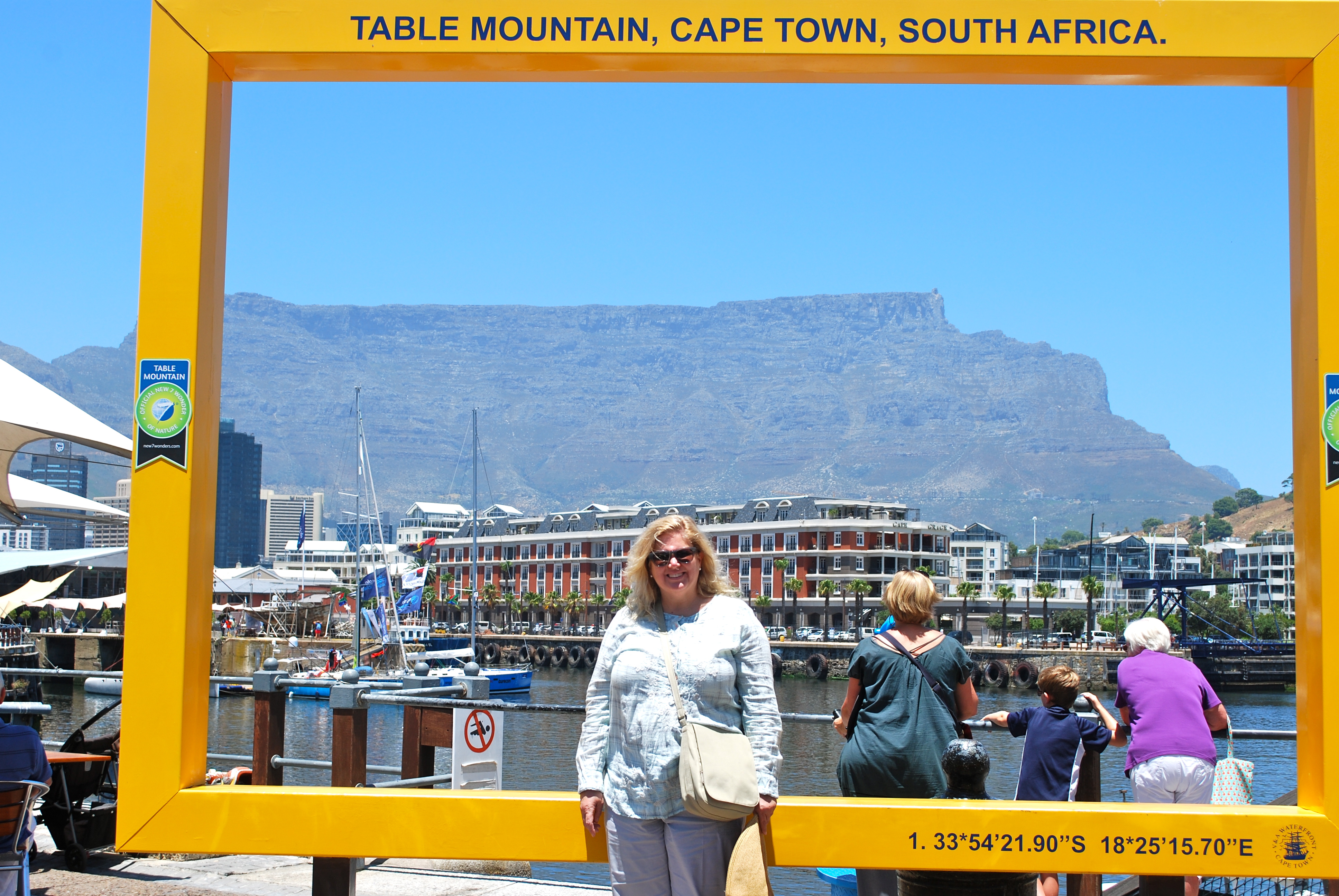 Our hotel, the Doubletree, is not in a tourist area, but we have this cool two-level loft room. There is a free shuttle to the Cape Town waterfront which we took advantage of today. Our shuttle driver went the extra mile and took us directly to the Hop On/Hop Off bus stop. The waterfront area is very large and he probably saved us 30 minutes of walking over and trying to locate the tour starting point. There were a lot of people in line for the blue line peninsula tour, but we were able to get right on for the red line city and surrounding tour and both grab “window” seats-actually outer edge seats since it is an open air double-decker bus. Plug in your headphones, select your language, and enjoy a guided tour timed to your position. Significantly, you can get off at any of the 18 stops on the route and re-board a later bus which run approximately every 15 minutes. Boris and I use these in lots of cities. We often do a complete circuit as an orientation and then get off and on the second time around. You can even start your tour at one of the other stops. (Our favorite Hop On/Hop Off is in Barcelona, Spain.)